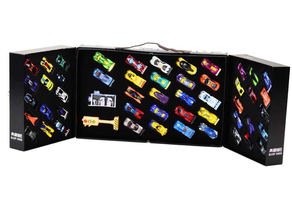Pagrindinis rinkinio elementas - didelis elegantiškos juodos spalvos lagaminas, papuoštas sodria grafika, kuri traukia akį. Atidarius lagaminą, jo šoninės sienelės atsilenkia, kad būtų galima lengvai pasiekti turinį ir atsirastų daugiau vietos žaidimams. Visas lagaminas pripildytas įvairių spalvų ir modelių automobiliais. Taip pat pridedami papildomi elementai, pavyzdžiui, šviesoforai, degalinė ir miesto planas, kurie pagerina žaidimą ir suteikia tikroviškumo.