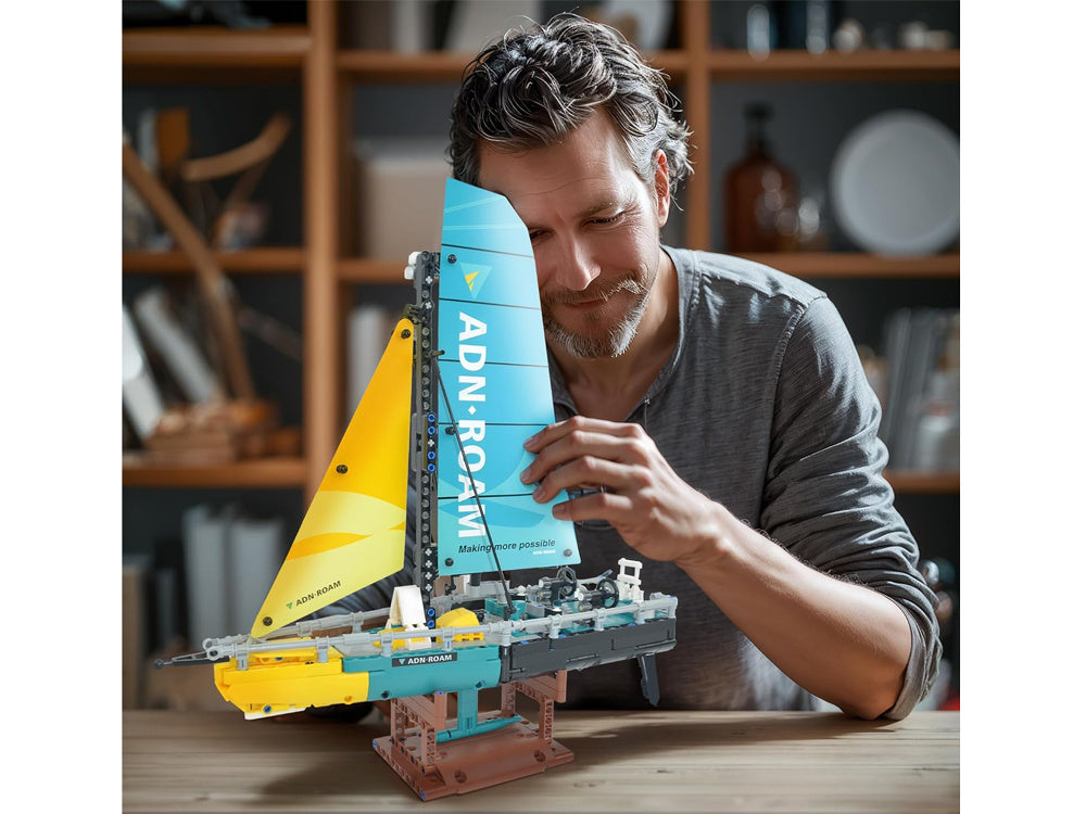 Leiskite savo vaikui pasinerti į vandens sporto pasaulį su sensacinga jachta. Ši jachta yra sportiškos geltonos ir mėlynos spalvos su jūriniais lenktynių lipdukais, spalvingomis burėmis su virvėmis ir gervėmis bei detaliu korpusu. Rinkinys suteikia jūsų vaikui daug džiaugsmo, lavina vaizduotę, rankų darbo įgūdžius ir motorinę koordinaciją. Žaisdami maži vaikai mokosi logiškai mąstyti, atpažinti formas ir spalvas, manipuliuoti daiktais ir priskirti juos vienas kitam.