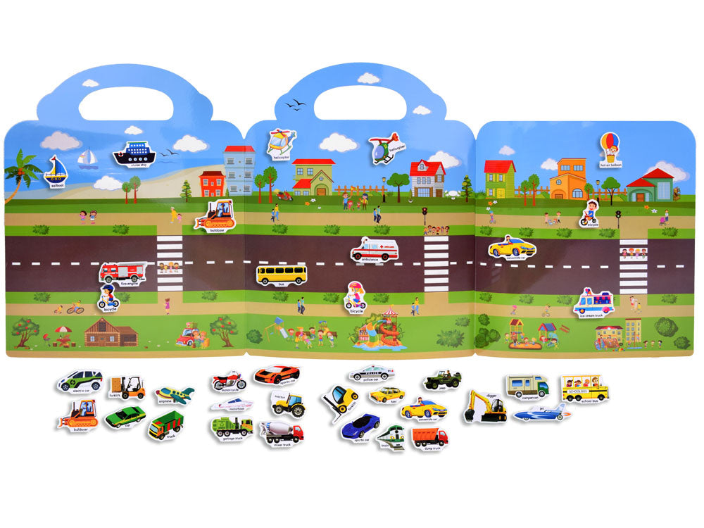 Lipdukų albumas - puiki idėja mažyliui, mėgstančiam kūrybiškai leisti laiką. Su lipdukų rinkiniu projektuokite ir kurkite saugų kelią transporto priemonėms. Klijuokite automobilių lipdukus ant kartono su slidžiu paviršiumi. Įtraukianti pramoga vaikams. Lipdukus taip pat galima naudoti daugeliui kitų žaidimų arba papuošti įvairius vaikų piešinius.
