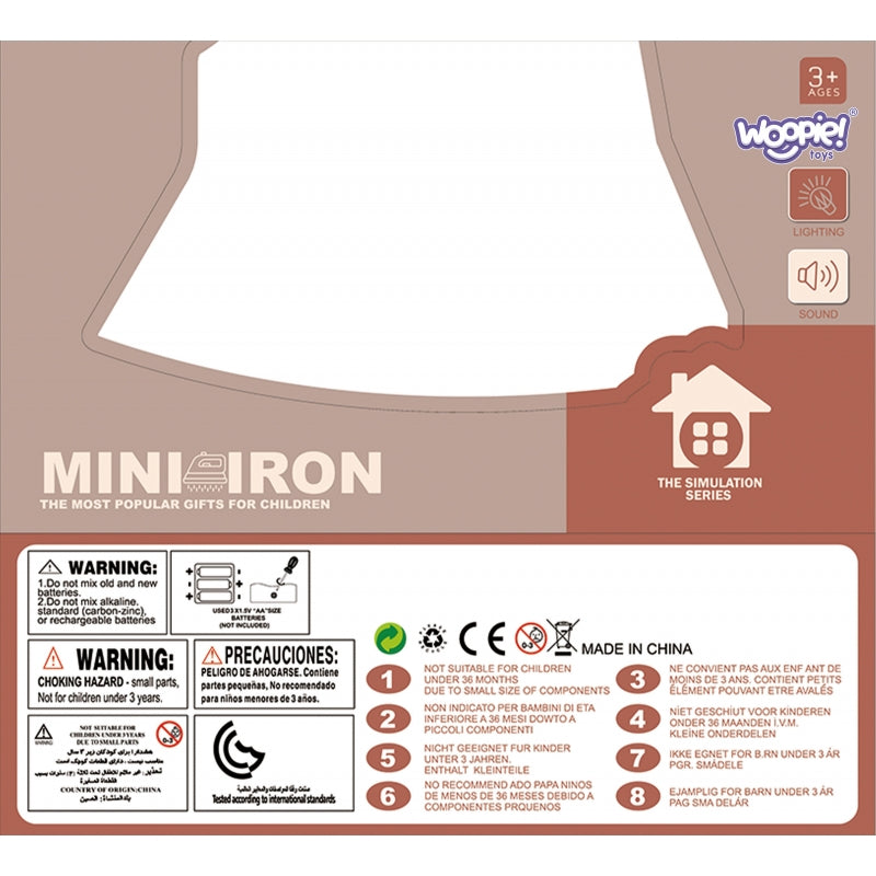 WOOPIE lygintuvas puikiai imituoja tikrą prietaisą, tačiau yra saugus žaislas vaikams, nes jis neįkaista. Žaislas turi daugybę funkcijų, kurios paįvairina žaidimą: šviečiančią LED lemputę, garso efektus ir purškimo funkciją, kai lygintuvas pripildomas vandens. Žaislas taip pat veikia ir neįpylus vandens. Tai puikus žaislas vaikams, mėgstantiems mėgdžioti tėvus kasdienėje veikloje.