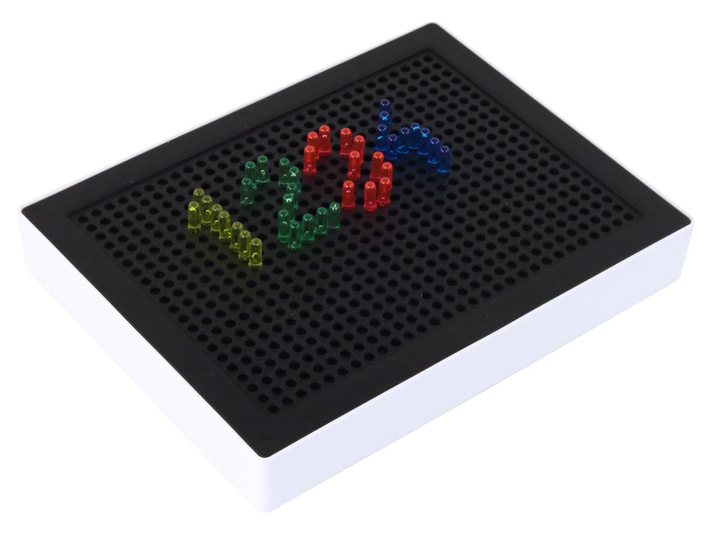 Atraskite nesuskaičiuojamas galimybes su 3D dėlionėmis - rinkinį sudaro 180 šviečiančių smeigtukų, lenta ir įkvepiantys šablonai. Kurkite įspūdingas konstrukcijas ir pakelkite pramogą į kitą lygį! Pramoga, mokymasis ir puiki pramoga viename.