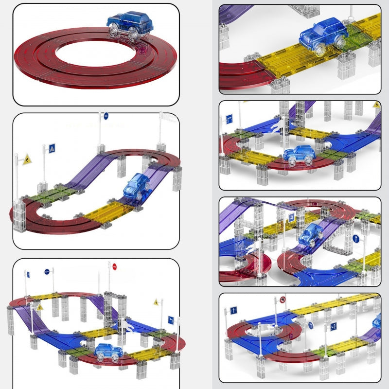 Woopie magnetinė lenktynių trasa – tai unikalus žaislas, kuris pažadins kiekvieno vaiko kūrybiškumą ir pavers žaidimą neįtikėtina šviesų ir spalvų kupina nuotykiu! Dėka lengvai sujungiamų magnetinių elementų, vaikai gali statyti įvairias daugiaaukštes trasas, kuriomis gali važiuoti šviečiantis visureigis. Skaidrios, spalvingos dalys ir įspūdingos LED lemputės žaislą daro patrauklų ir suteikia daug džiaugsmo tiek dieną, tiek vakare.