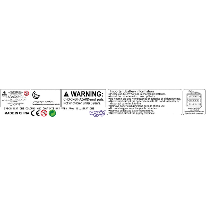 - Maitinama 3 x 1,5 V AA tipo baterijomis (į komplektą neįeina)