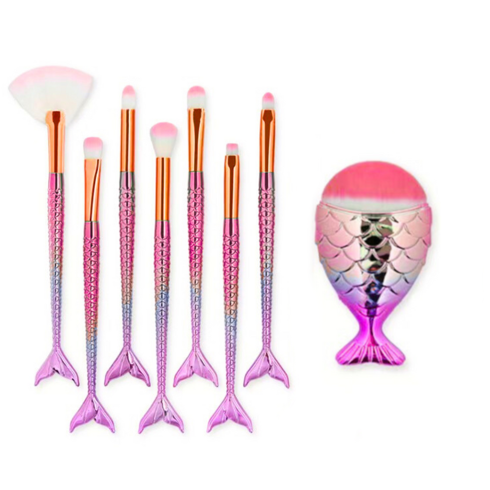 Įneškite magijos į savo makiažą su šiuo 11 vaivorykštinių šepetėlių rinkiniu, unikalaus dizaino, primenančio undinės uodegą. Šie gražūs ir funkcionalūs šepetėliai žavi ne tik įmantriu dizainu, bet ir kokybiška gamyba, užtikrinančia tikslų bet kokios kosmetikos priemonės naudojimą. Rinkinį sudaro šepetėliai, skirti visiems makiažo etapams - nuo makiažo pagrindo tepimo, šešėlių maišymo, iki tikslaus kontūravimo.