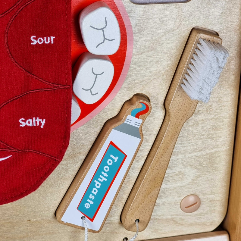 Burnos higienos sienų lenta formuoja pagrindinę gyvenimo veiklą. Ji moko vaikus, kaip tinkamai valyti ir prižiūrėti dantis. Tai labai svarbus bet kurio vaiko raidos etapu. Lenta leidžia išmokti ne tik tinkamai valdyti šepetį, bet ir atpažinti tokius skonius kaip rūgštus, kartus, saldus ir sūrus.