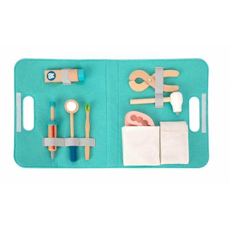Mediniai įrankiai maišelyje mažam stomatologui. Šiame rinkinyje yra viskas, ko reikia jūsų mažajam gydytojui. Būsimieji gydytojai savo pacientams galės suleisti, ištraukti ir tikrinti dantų būklę. Stomotologo žaidimas yra ne tik vienas iš vaidmenų žaidimų, bet ir mokomasi rūpintis higiena bei jos stokos pasekmėmis.