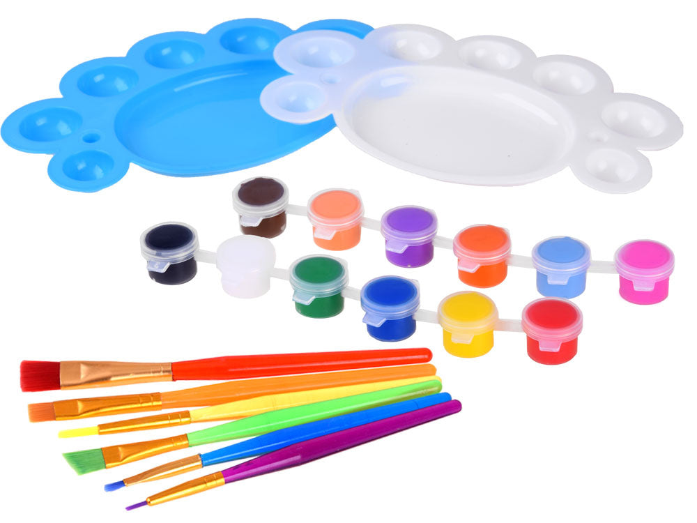 Daugiaelementis mažojo dailininko rinkinys tapybai dažais, puikiai tinkantis vaikams, mėgstantiems kūrybiškai leisti laiką. Idėjų, kaip žaisti su šiuo spalvingu rinkiniu, tikrai netrūks. Galite atspausti raštus įvairaus dydžio kempinėlėmis, pamerkti volelius su raštais į dažus ir atspausti ant lapo, maišyti spalvas ir kurti savo. Rinkinyje esantys priedai moko mažąjį dailininką atrasti ir naudoti įvairias tapymo technikas, dirbti su skirtingomis tekstūromis ir naudoti raštus, kad sukurtų gražius unikalius paveikslėlius.