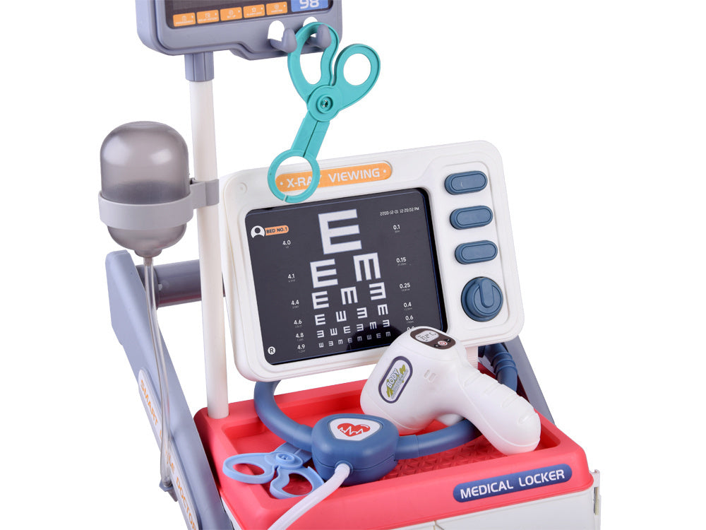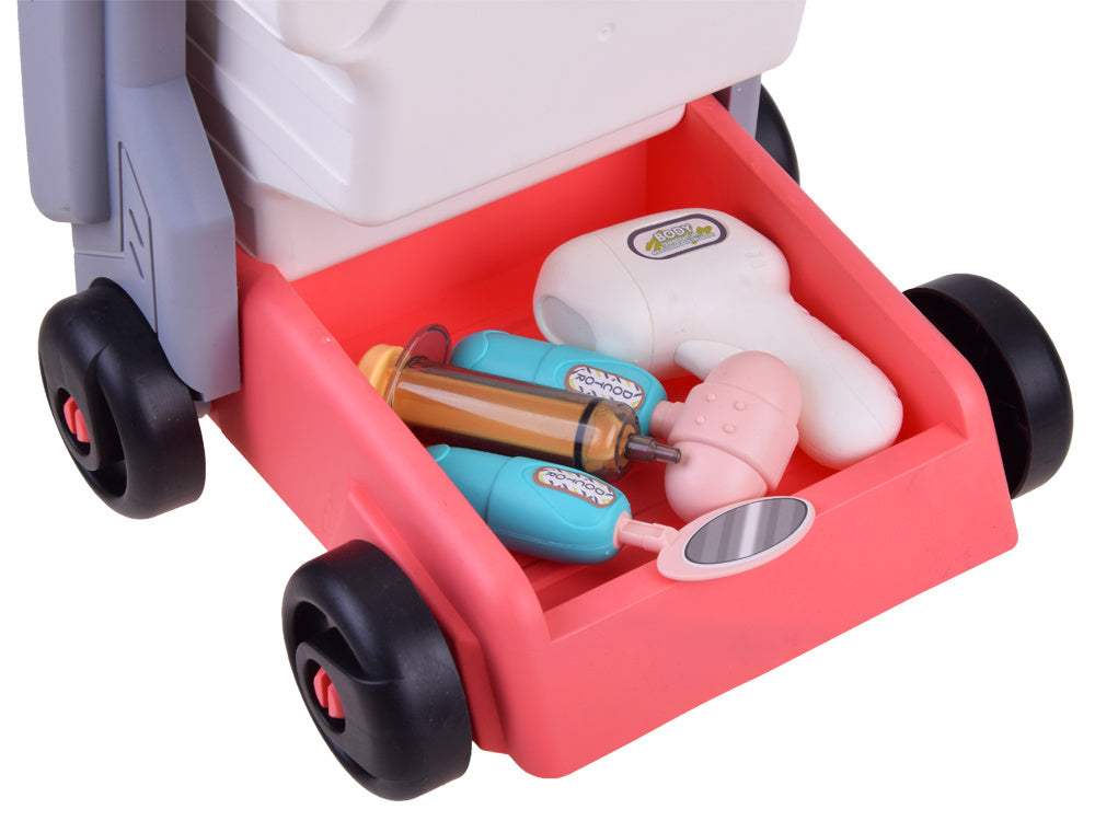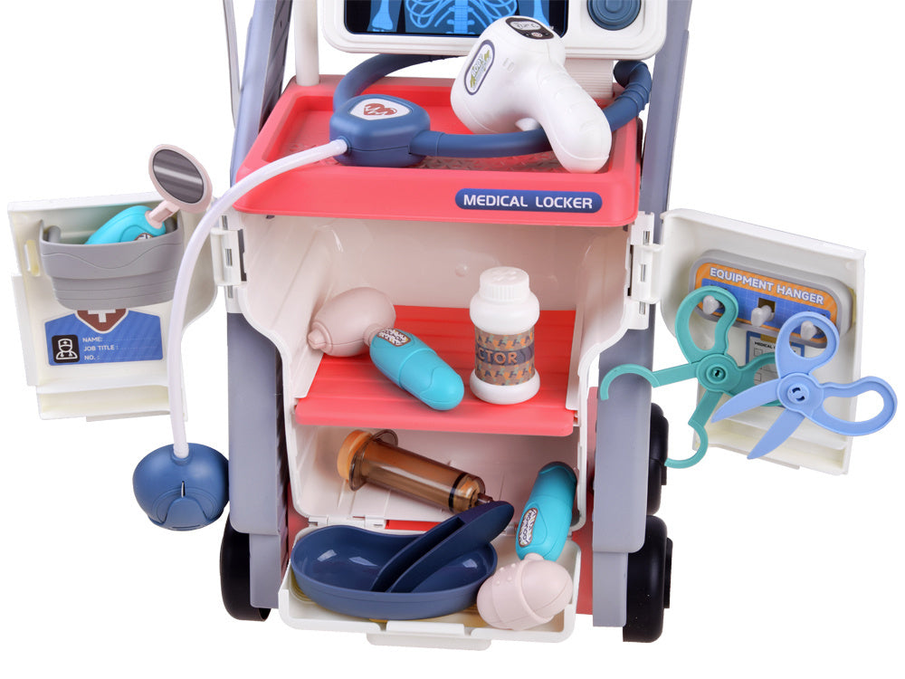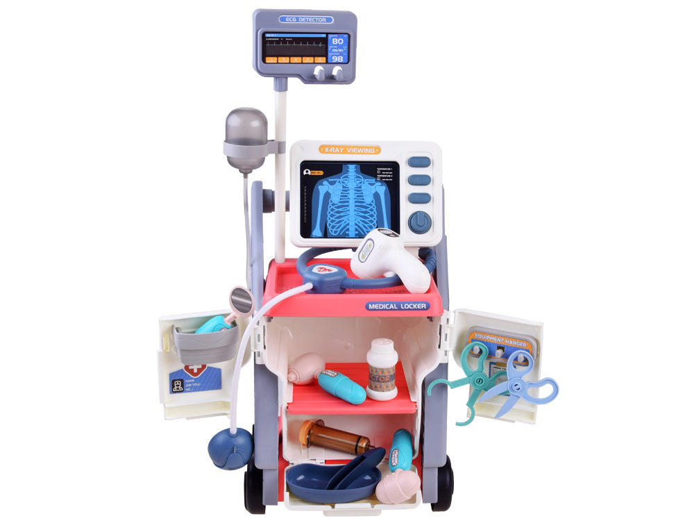 Puiki įranga vaikams žaisti gydytoją. Tokio rinkinio dėka visos lėlės, meškiukai, kiti žaislai, taip pat tėveliai ar seneliai visada bus sveiki. Gydytojo vežimėlis su spalvingais priedais leis vaikams realistiškai vaidinti gydytoją. Tai leis mažiesiems gydytojams pasijusti tikrais medikais. Žaidimas taip pat gali būti puikus būdas supažindinti vaiką su gydytoju ir medicinos tarnyba. Be to, mokymasis žaidžiant turi nuostabų poveikį ateityje.