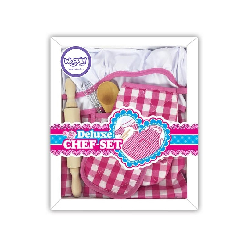 „WOOPIE“ šefo rinkinys „Virėjo apranga su aksesuarais“ yra gražus produktas kiekvienam mažam virėjui. Gražiai supakuota ir puikiai tinka kaip dovana mažam virėjui.