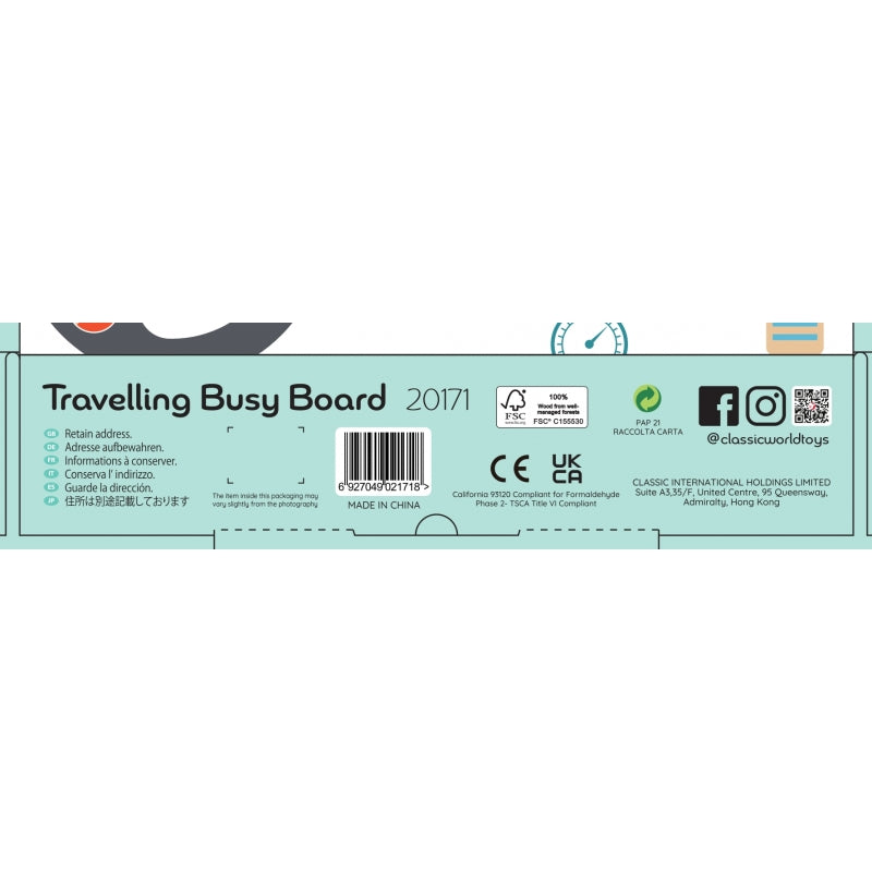 CLASSIC WORLD prekės ženklo manipuliacijų lenta 6in1 yra puikus žaislas ilgoms kelionėms. Lentoje yra labirintas, karoliukai, besisukantis ratas, ritinėlis, veidrodėlis ir rankenėlės, kurie prikaustys jūsų vaiko dėmesį ilgoms valandoms. Įdomus dizainas ir daugybė elementų skatins vaiko vaizduotę ir kūrybiškumą, be to, lavins mažylio rankų įgūdžius ir koordinaciją.