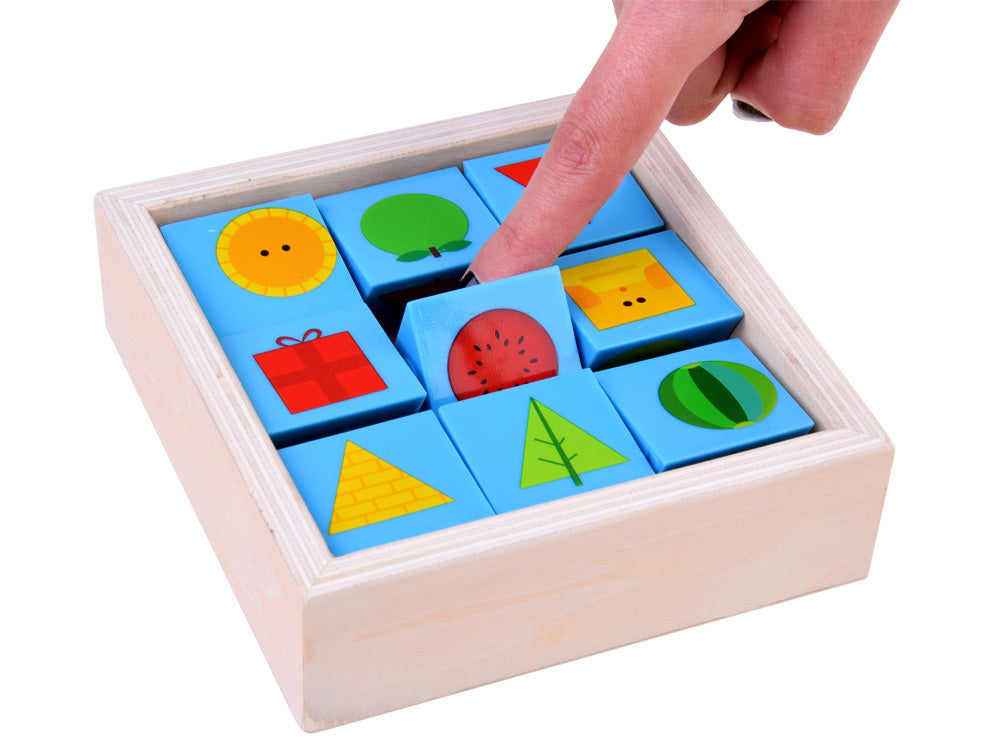 Loginė dėlionė iš medinių kaladėlių su skaičiais ir spalvomis, įdėta į medinę dėžutę, kiekvienam vaikui suteiks daug džiaugsmo. Smagumą sudaro spalvų, figūrų išdėstymas, derančių elementų ieškojimas. Šios dėlionės dėka vaikas gali išmokti pagrindinių spalvų, formų.