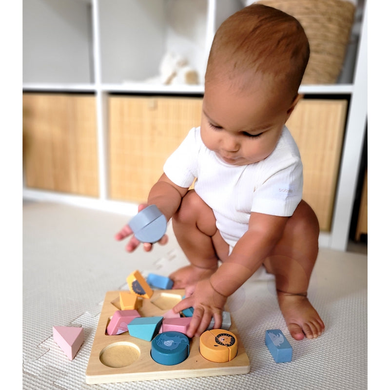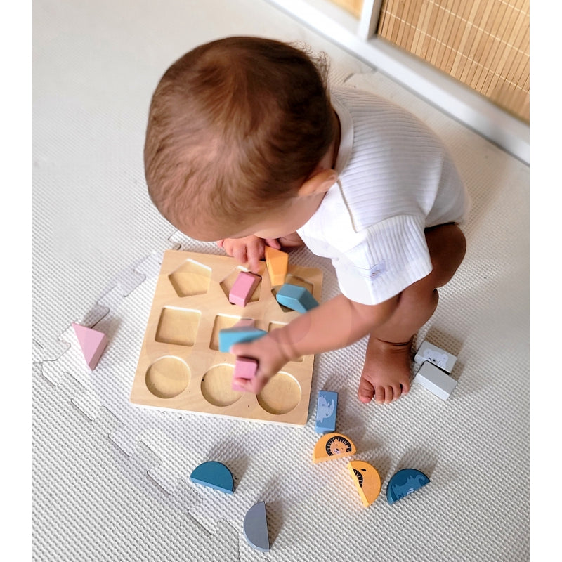 - Kiekvieną rinkinį sudaro 2 elementai. Be to, dėlionės padės išmokti formų, spalvų ir gyvūnų.