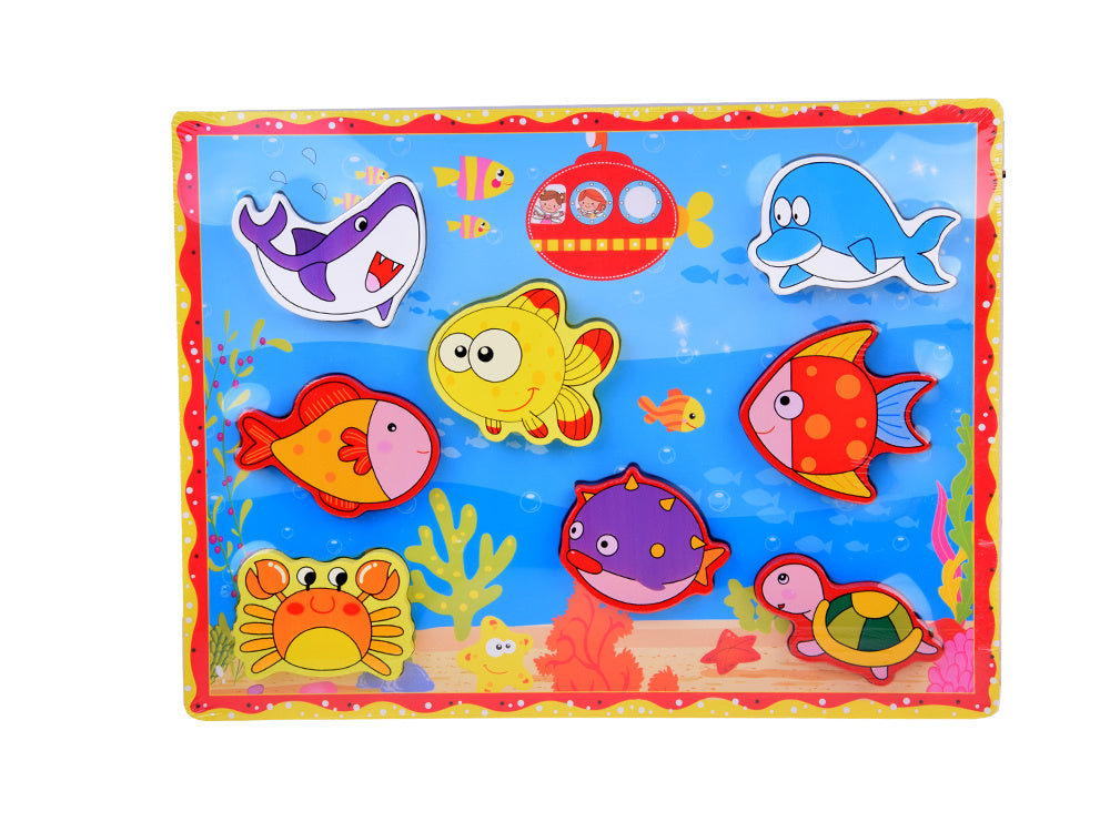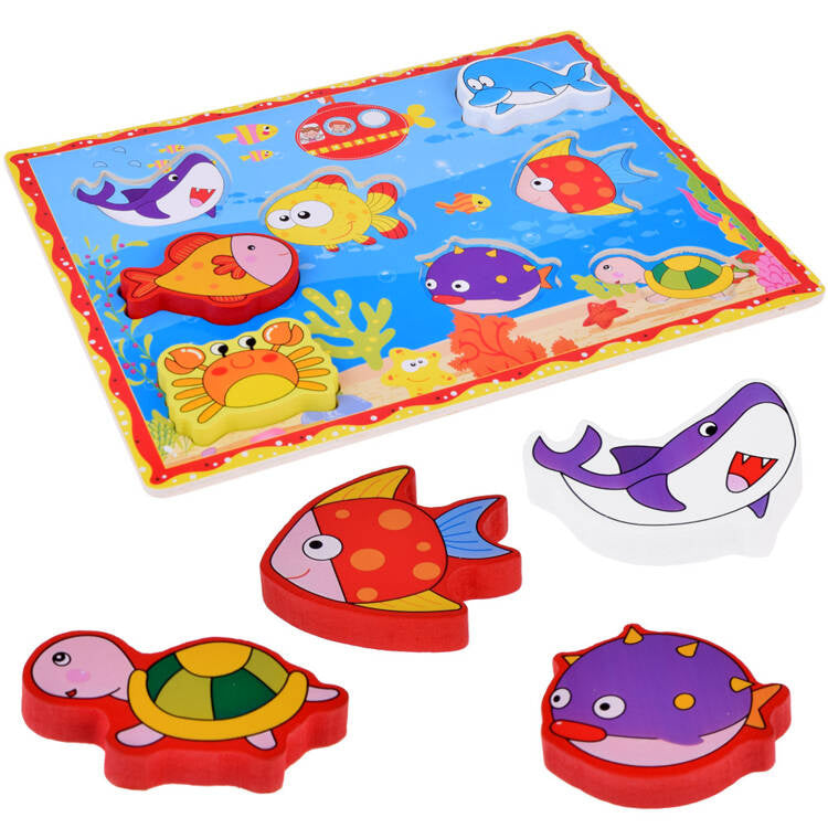 Medinė dėlionė sujungia mokymosi ir žaidimo elementus. Žaisdamas vaikas lavina lyginimo įgūdžius, įžvalgumą ir smulkiąją motoriką. Kartu vaikas gali mokytis jūros gyvūnų pavadinimų. Žaislas pagamintas skiriant dėmesį detalėms ir yra visiškai saugus vaikui. Dideles, tvirtas dėliones lengva paimti ir įdėti į atitinkamas skylutes.