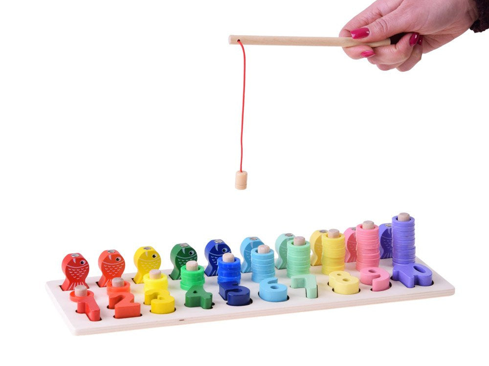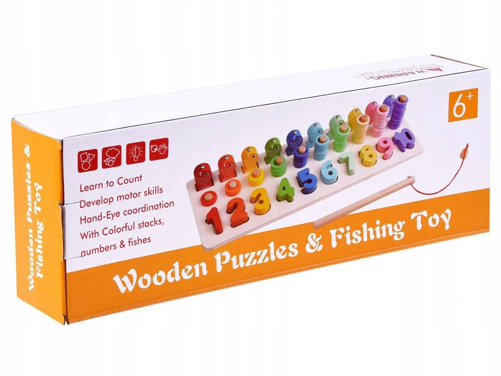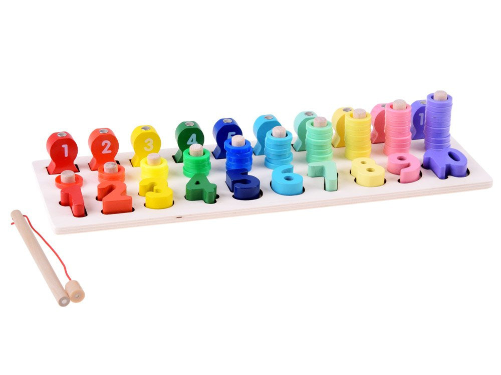 Medinė edukacinė dėlionė skaičiai ir spalvos su meškere