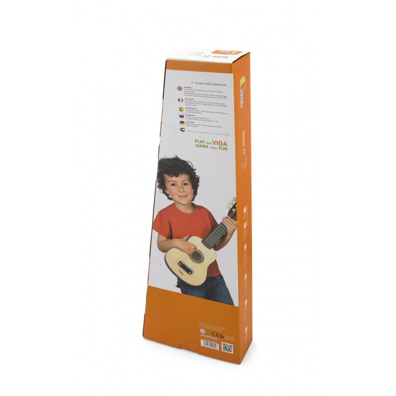 Ši sensacinga akustinė gitara vaikams iš Viga yra puiki dovana jaunam muzikantui. Mokymasis groti bus smagus ir padės ugdyti jų talentus. Žaislas yra tikros klasikinės gitaros kopija, todėl jūsų mažasis menininkas bus dar labiau pasiryžęs pradėti mokytis. Grojimas gitara turi teigiamą poveikį vaikų vystymuisi, nes jie susipažįsta su muzika.