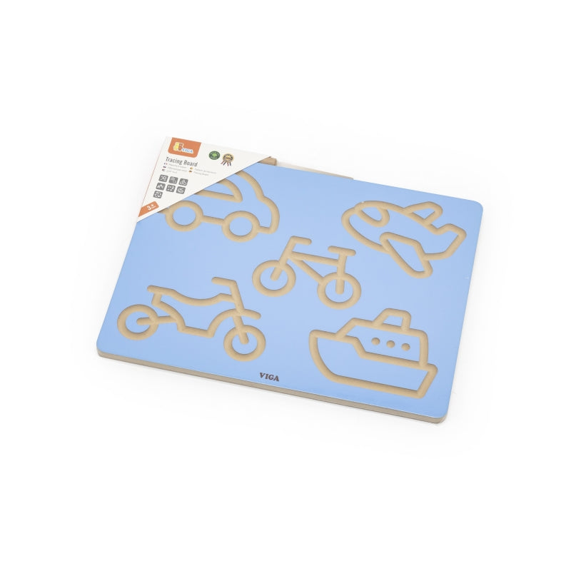 Medinė grafomotorinė lenta transporto priemonės VIGA, mėlyna