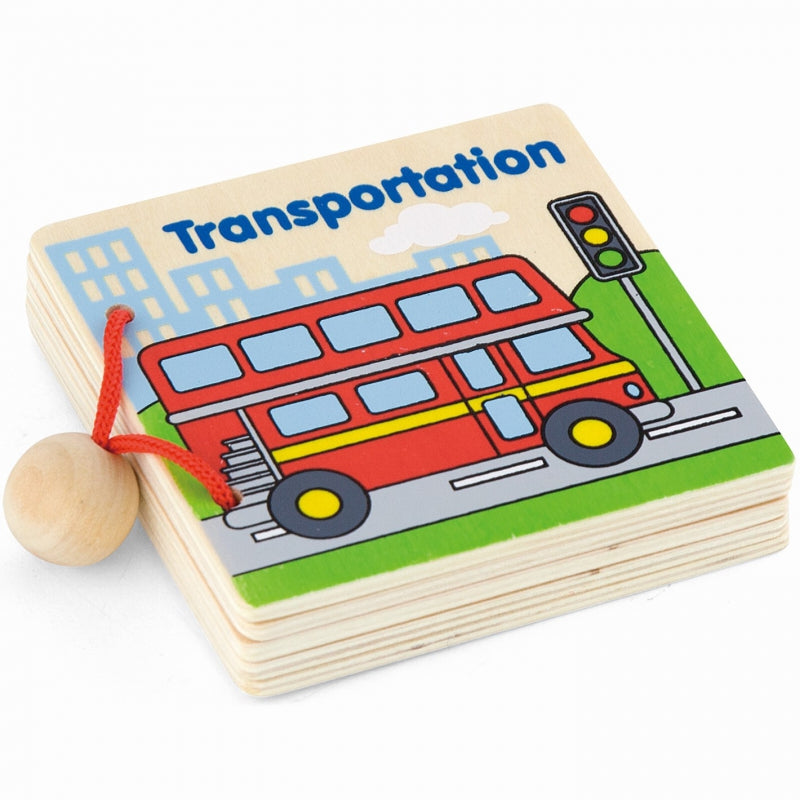 Nuostabi medinė knygutė, lavinanti vaizduotę ir ugdanti susikaupimą. Mediniai puslapiai sujungti raudona virvele. Kiekviename puslapyje yra skirtingas paveikslėlis ir užrašai anglų kalba. Knygutė puikiai tinka ir vaikų darželiui, ir namams. Žaislas moko vaiką pažinti daiktus, spalvas ir padeda formuoti rankų judesius, be to, vaikas susipažįsta su pirmaisiais žodžiais anglų kalba.
