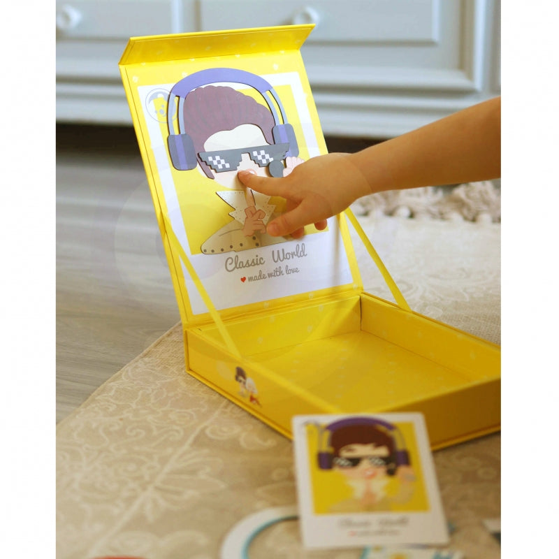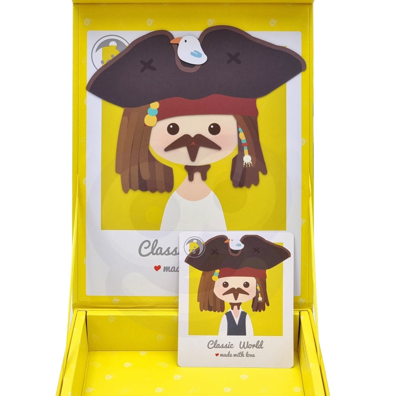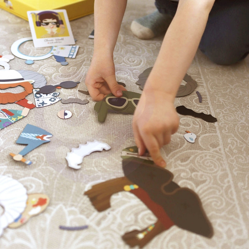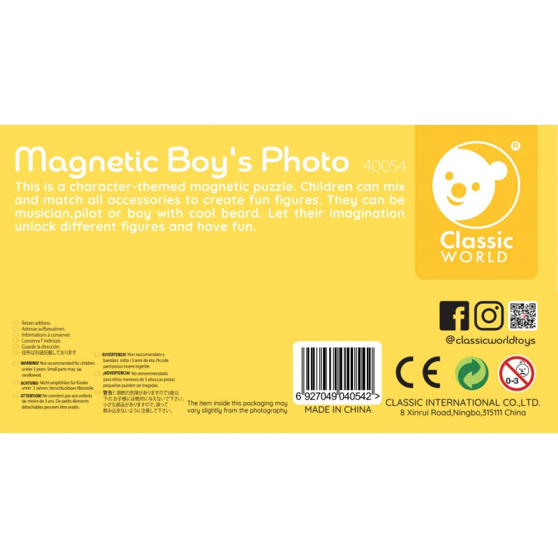 Magnetinė dėlionė ilgam užims jūsų vaiką. Rinkinyje yra 32 detalės, įskaitant 8 korteles su persirengusių berniukų modeliais, kuriuos reikia sudėlioti. Žaidimas lavins jūsų vaiko vaizduotę ir kūrybiškumą.