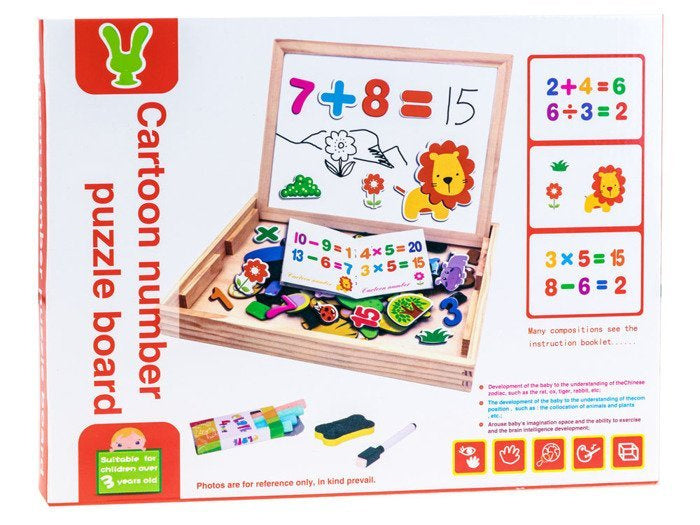 Medinė magnetinė ir kreidinė lenta su priedais puikiai tiks dailės darbui, mokymuisi rašyti, matematiniams skaičiavimams, kūrybiniams piešiniams, paveikslams kurti. Lenta iš medžio turi kreidos arba magnetinę pusę po užbaigtų piešinių, paveikslų, viską galima uždaryti ir paslėpti. Kreidos pusėje galima tapyti, piešti kreida, o magnetinėje – piešti, rašyti sausu trynimo žymekliu, klijuoti paveikslėlius, magnetinius skaičius.