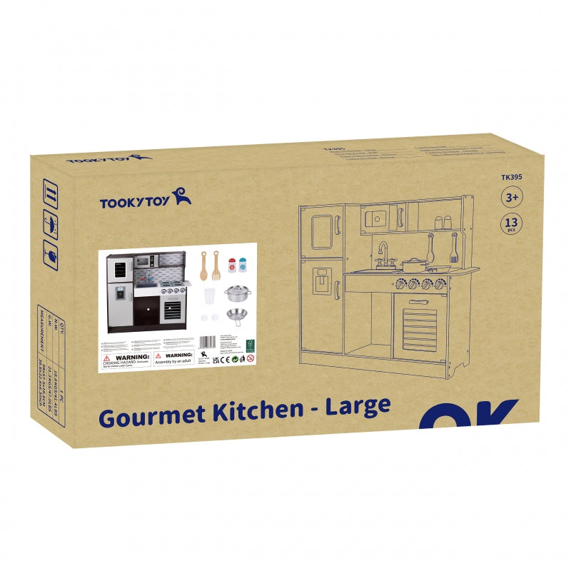 „Tooky Toy“ medinė moderni virtuvė yra amžinas ir mėgstamas žaislas vaikams, kuris nukels juos į maisto gaminimo pasaulį. Virtuvė yra su visais priedais ir prietaisais, stimuliuojančiais tikrą virtuvę, todėl idealiai tinka vaidmenų žaidimams ir leidžia vaikams imituoti suaugusiųjų kasdienybę.