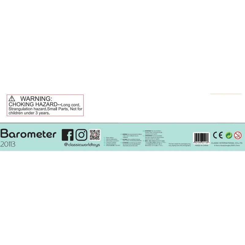 Žinomo prekės ženklo „Classic World“ edukacinis barometras yra idealus gaminys mokytis apie orus. Barometras rodo, kokie šiuo metu yra orai, kiek iškrito kritulių , kokio stiprumo vėjas pučia ir kokia lauke temperatūra. Vaikas gali pasiimti barometrą į kelionę ir nustatyti oro sąlygas už lango realiuoju laiku.