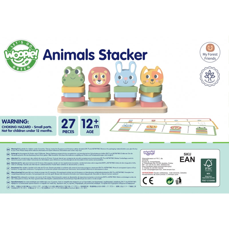 WOOPIE prekės ženklo Montessori dėlionė iš serijos GREEN yra unikalus, lavinamasis žaislas, skatinantis visapusišką vaiko vystymąsi per kūrybišką ir įtraukiantį žaidimą. Rinkinyje yra įvairių formų kaladėles ir mielų gyvūnų figūrėles, kurias galima įvairiai sudėlioti pagal pridedamų kortelių modelius arba savo vaizduotę. Žaidimą galima paįvairinti žaidimu, kai vaikas įsimena ir atkuria paveikslėlį iš atminties.