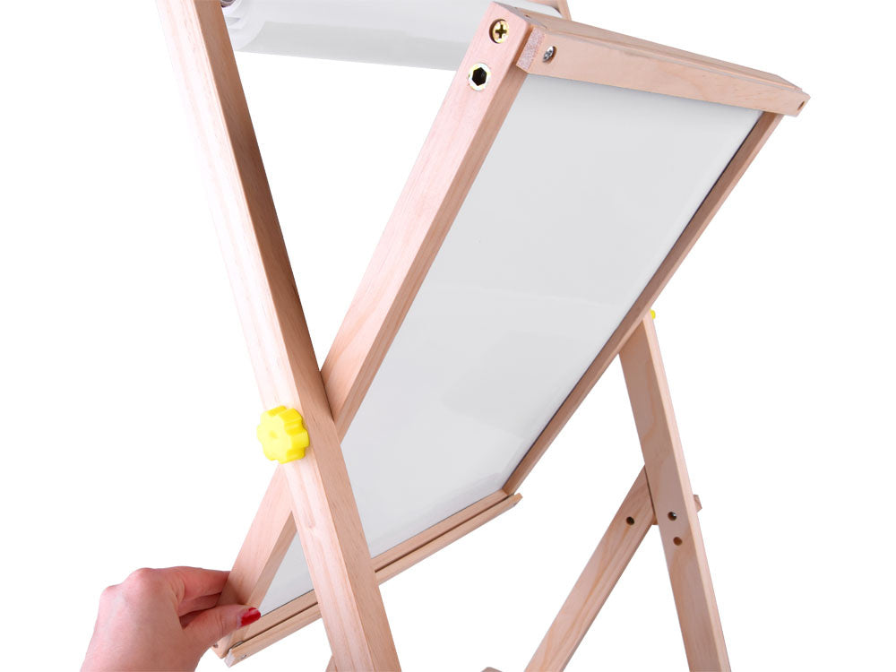 Dvipusė medinė lenta su dviem skirtingais paviršiais tapybai ir piešimui, kuri atitiks kiekvieno vaiko poreikius. Lentoje įrengta lentynėlė būtiniems priedams, abakas, popieriaus ritinėlis ir magnetinės raidės, kurios kiekvienam vaikui tikrai suteiks daug kūrybinių ir meninių pramogų.