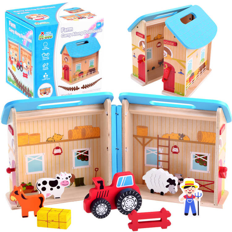 Medinė sulankstoma ferma su ūkio gyvūnais