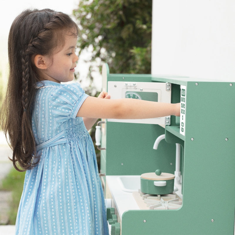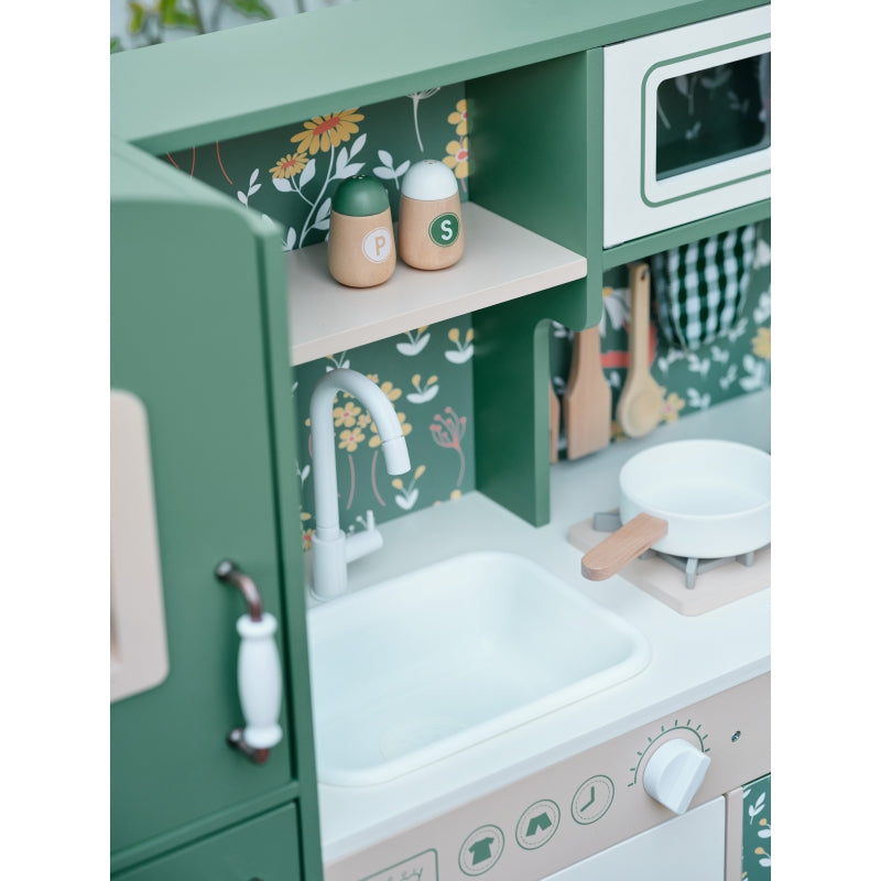 Graži virtuvė yra puikus pasiūlymas vaikams, kurie mėgsta atlikti įvairius kasdieniame gyvenime stebimus suaugusiųjų vaidmenis. Ši medinė žaidimų virtuvė skatins kūrybinį žaidimą, lavins vaizduotę ir stimuliuos motorinius įgūdžius.