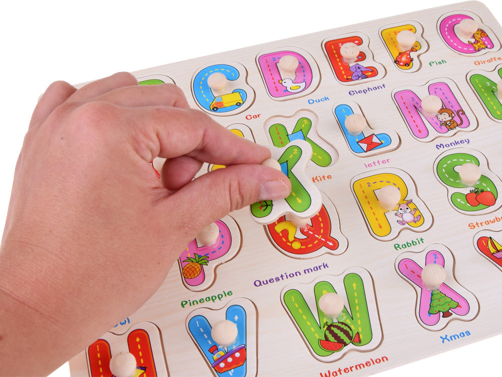 Medinė lenta su spalvotomis raidėmis leis jūsų vaikui mokytis žaidžiant. Lentoje yra 26 spalvotos didelės raidės su rankenėlėmis, kad būtų lengviau išimti ir įdėti. Be to, kiekviena raidė turi savo spalvą, paveikslėlį ir pavadinimą anglų kalba.