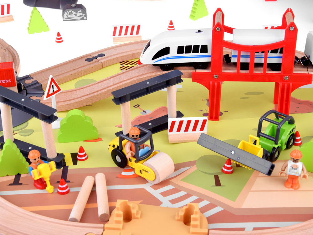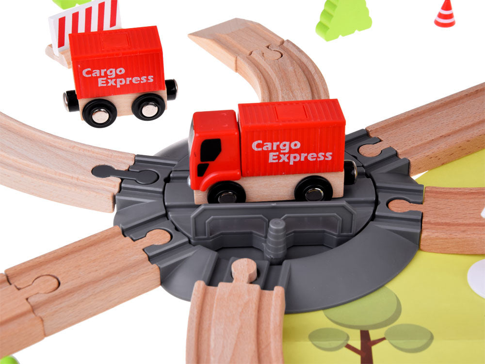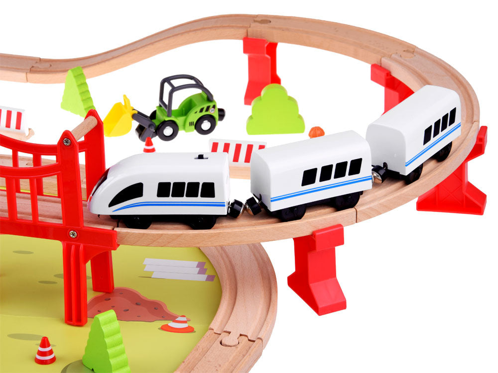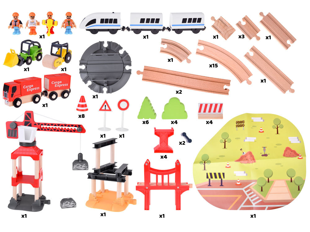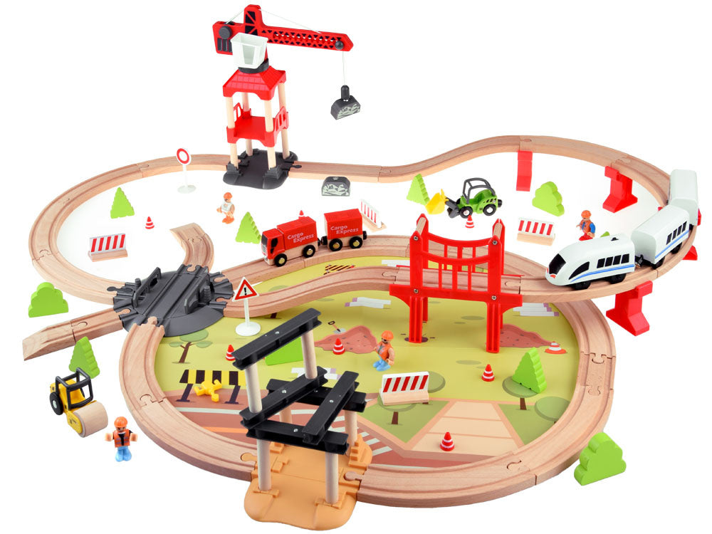Medinis traukinukas yra amžinas puikus žaislas, kuris tikrai pradžiugins bet kurį vaiką. Šį kelių dalių rinkinį sudaro apie 100 skirtingų medinių ir plastikinių dalių bei priedų, iš kurių galima sukonstruoti puikią transporto bazę su bėgiais ir pakrovimo aikštele. Medinis traukinukas yra puikus žaislas ne tik mažiesiems konduktoriams ir traukinių mėgėjams. Jis skatins vaizduotę, lavins jūsų vaiko kūrybiškumą ir erdvinio mąstymo įgūdžius bei teigiamai paveiks rankų ir akių koordinaciją.