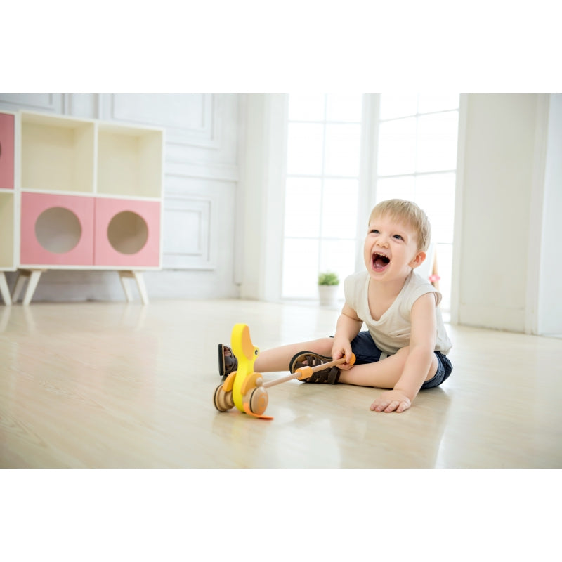 Classic World, medinis stūmimo žaislas. Vaikai gali išmokti vaikščioti vesdamas priešais savo mėgstamą žaislą.