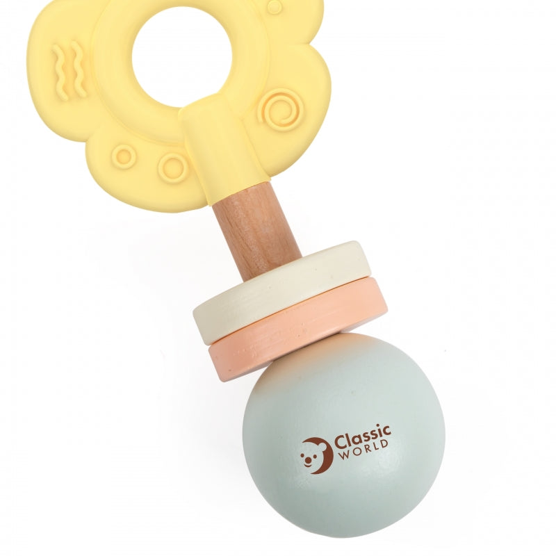 Medinis barškutis-kramtukas “Gėlė” 2in1, CLASSIC WORLD