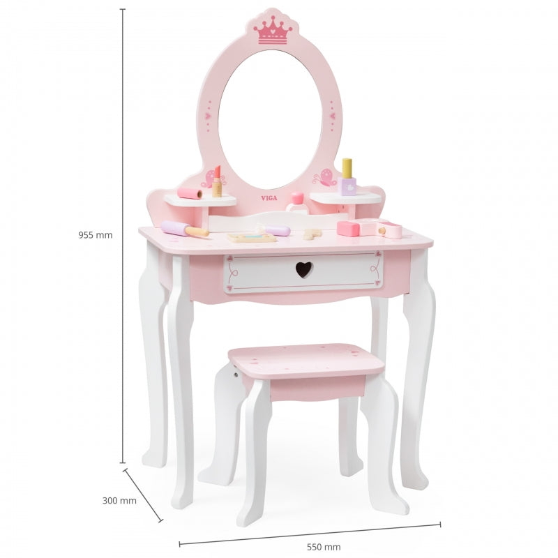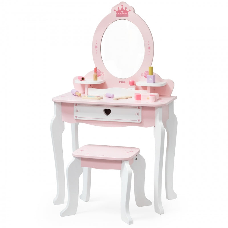 Medinis didelis tualetinis staliukas su veidrodžiu ir kėdute vaikams, VIGA