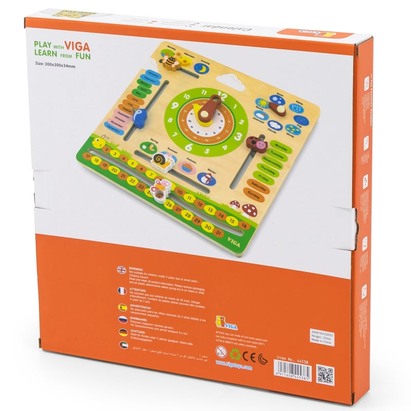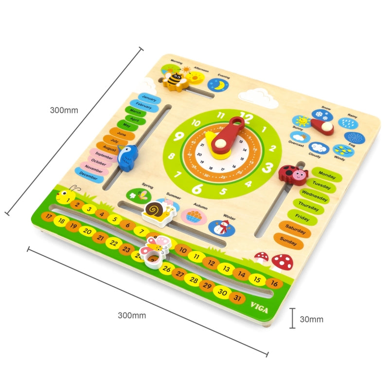 Šis mokomasis kalendorius yra puikus žaislas, skirtas mokytis apie bėgantį laiką, orų kaitą ir metų laikus. Naudodami spalvotus, judančius elementus, vaikai gali kasdien koreguoti datą, pasirinkti tinkamą orą ir sezoną bei mokytis su laiku susijusių sąvokų. Kalendorių galima kabinti ant sienos arba padėti ant rašomojo stalo, todėl jis yra ir funkcionalus, ir dekoratyvus vaiko kambaryje.