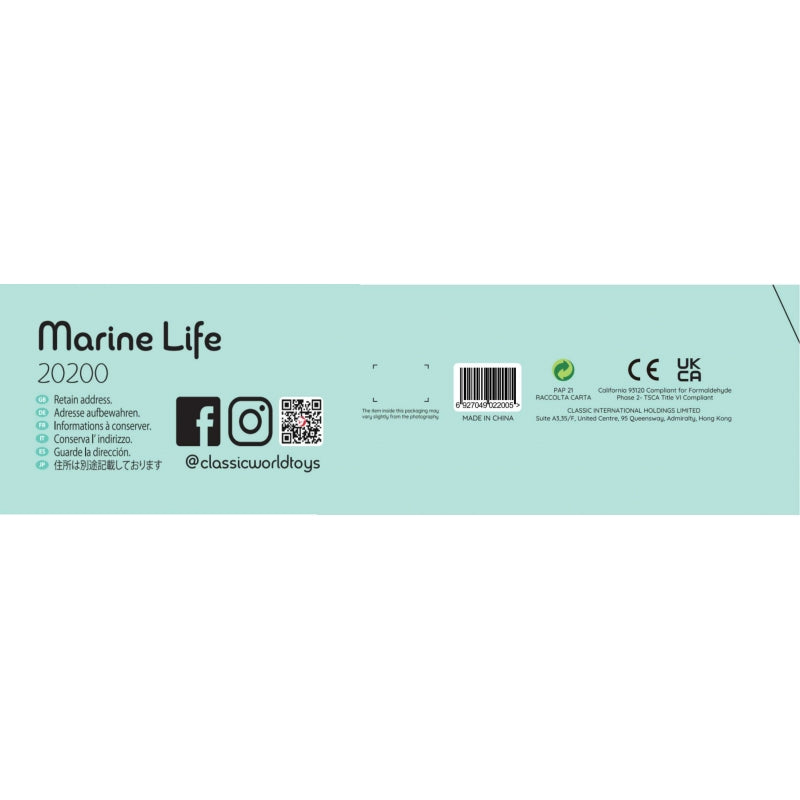 CLASSIC WORLD prekės ženklo „Marine Life Interlaced Labyrinth“ yra gražus modernus pastelinių spalvų žaislas, kuris padeda vaikui lavinti smulkiąją motoriką ir kartu supažindina su nuostabiu gyvybės pasauliu. Vaikai gali judinti burbulus ir kamuoliukus aplink banginį, virš jūros arba po ja. Mažasis banginis plaukia aplink savo mamą ir plaukia tarp jūros dumblių, žuvų ir kt. Mediniai susipynę karoliukai yra puikus sensorinis žaislas, leidžiantis vaikui lavinti rankų miklumą.