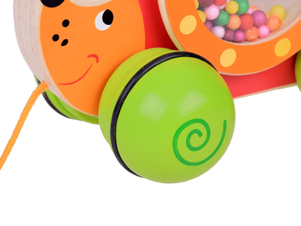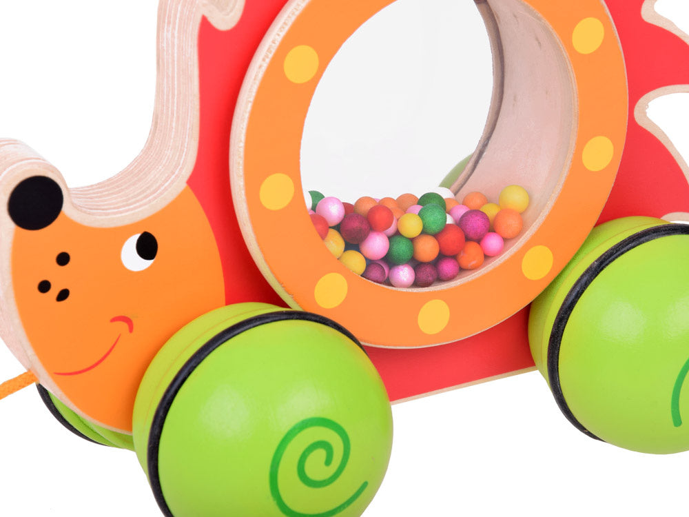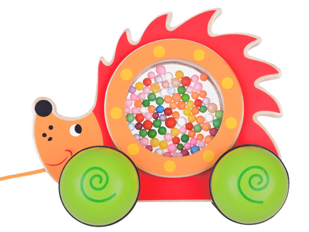Medinis ežiukas ant ratukų su spalvotais kamuoliukais