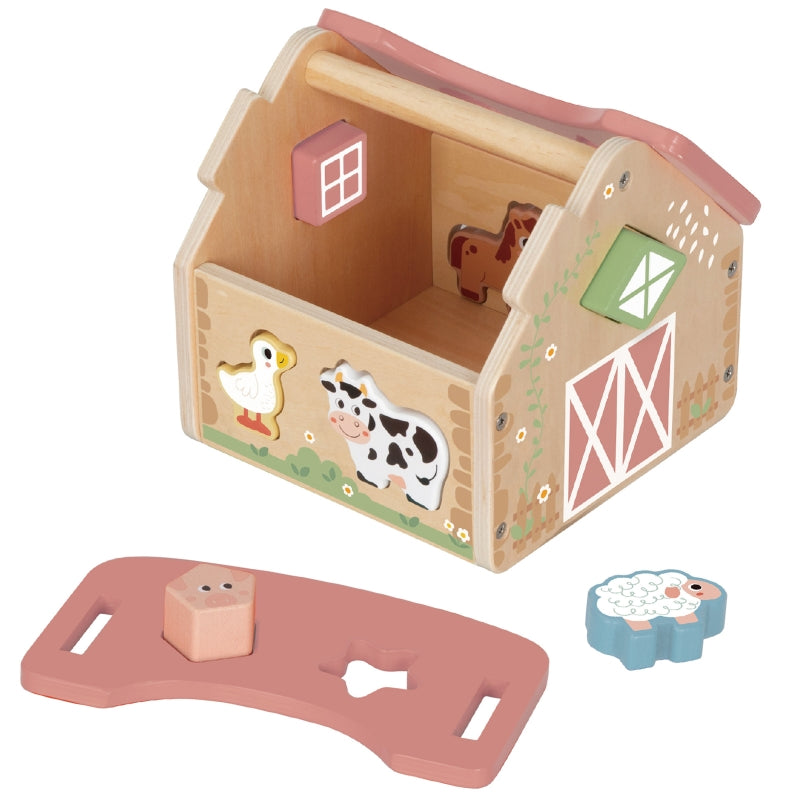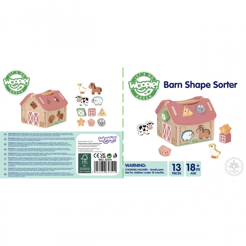Pastelinės spalvos ūkio rūšiuoklis iš WOOPIE GREEN serijos yra puikus edukacinis žaislas vaikams nuo 18 mėnesių. Kaimo tema skatina kūrybinį žaidimą ir moko vaikus atpažinti formas, spalvas ir gyvūnus. Jis derina mokymąsi su žaidimu, ugdo vaizduotę, loginį mąstymą ir rankų įgūdžius.