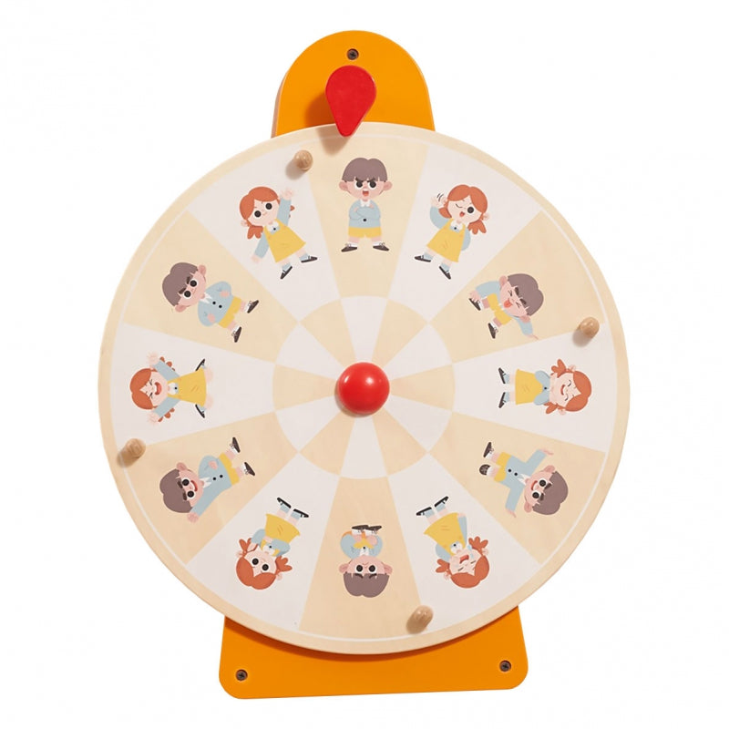 Interaktyvus žaislo lentoje pavaizduota 12 vaikų su skirtingomis veido išraiškomis ir veikla. Sukite ratą ir palaukite, kol jis sustos. Raudona rodyklė rodys vaiką, kurį reikia atkartoti. Žaidimas padeda vaikams pažinti įvairias emocijas ir kūno judesius, lavina stebėjimo ir greitos reakcijos įgūdžius.