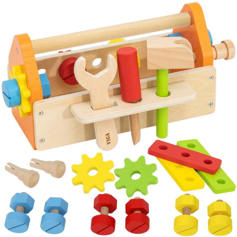 Viga medinis įrankių rinkinys iš PolarB kolekcijos suteiks daug džiaugsmo kiekvienam mažam namų meistrui. Rinkinyje yra viskas ko gali prireikti jaunajam meistrui. Vaikai gali susipažinti su įvairiais įrankiais ir ugdyti sukimosi, mušimo ir derinimo įgūdžius. Žaidimas „pasidaryk pats“ padės ugdyti rankų įgūdžius, žadins smalsumą ir skatins vaiko vaizduotę.