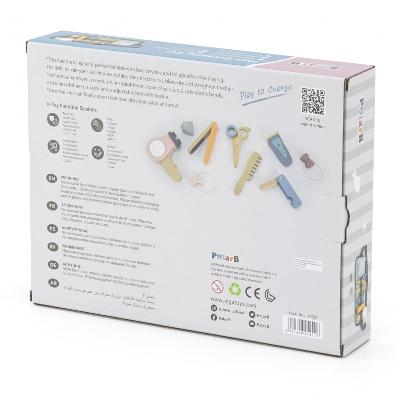 Šis VIGA prekės ženklo kirpėjo rinkinys idealiai tinka vaikams, mėgstantiems pasitelkti savo kūrybiškumą ir vaizduotę žaidžiant įvairius vaidmeninius žaidimus. Mažieji kirpėjai ras viską, ko gali prireikti žaidžiant kirpimo, džiovinimo žaidimus.