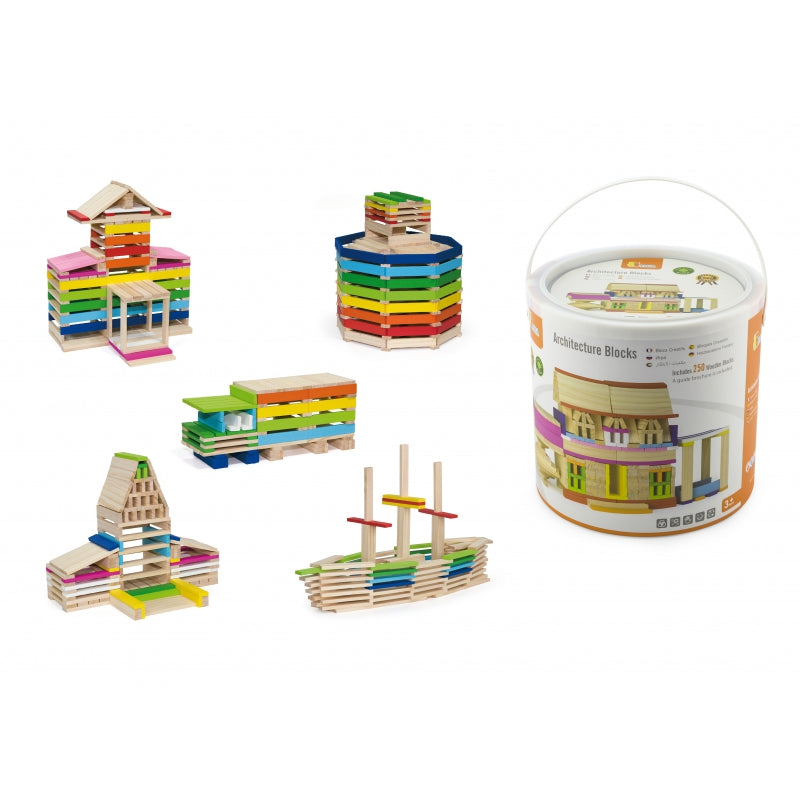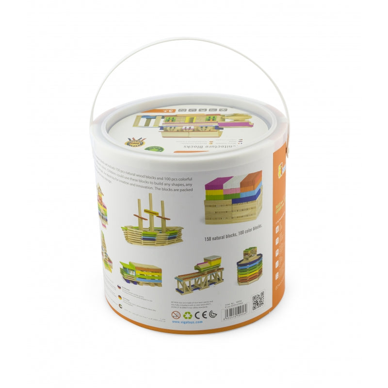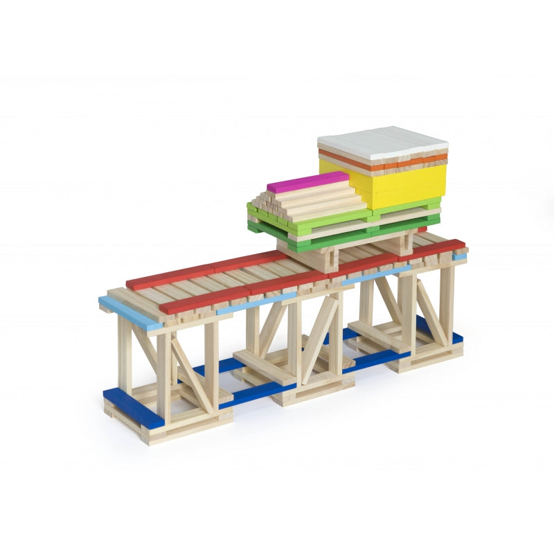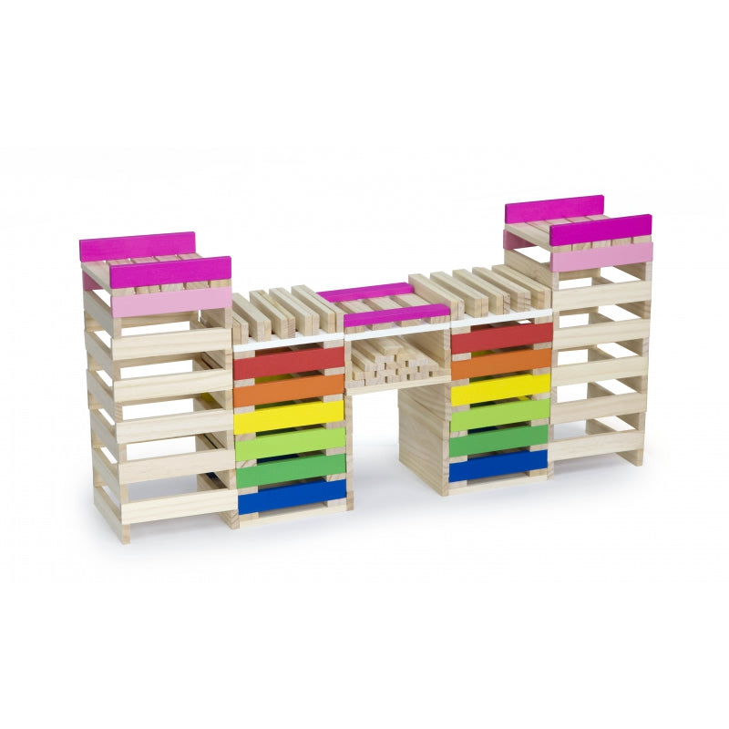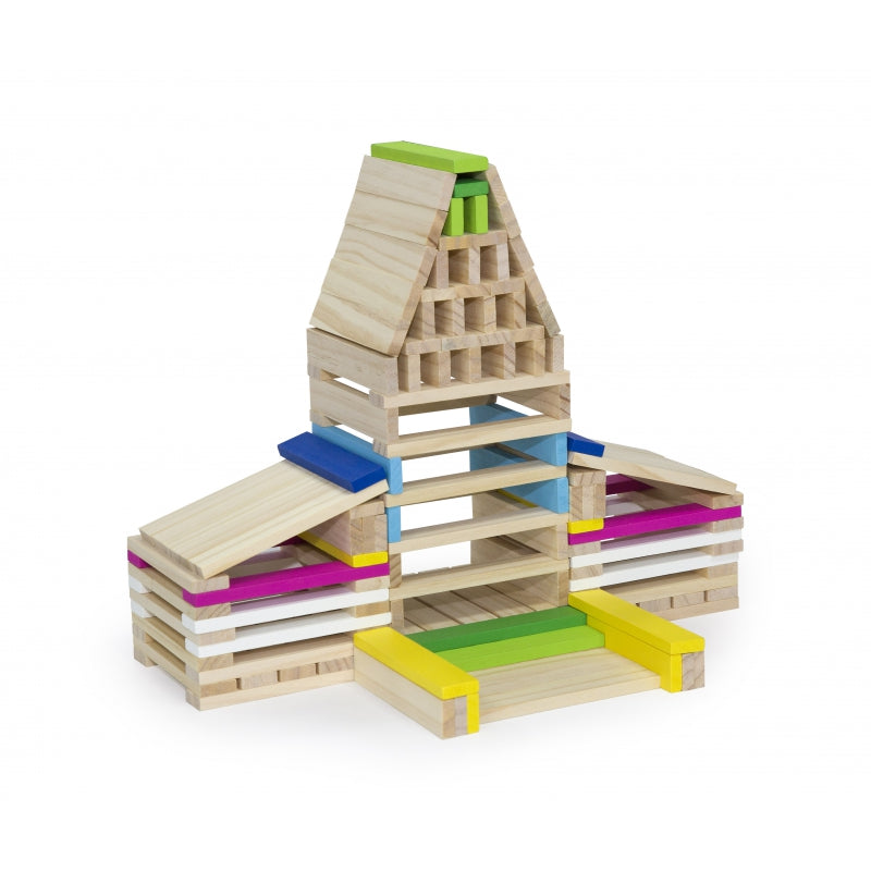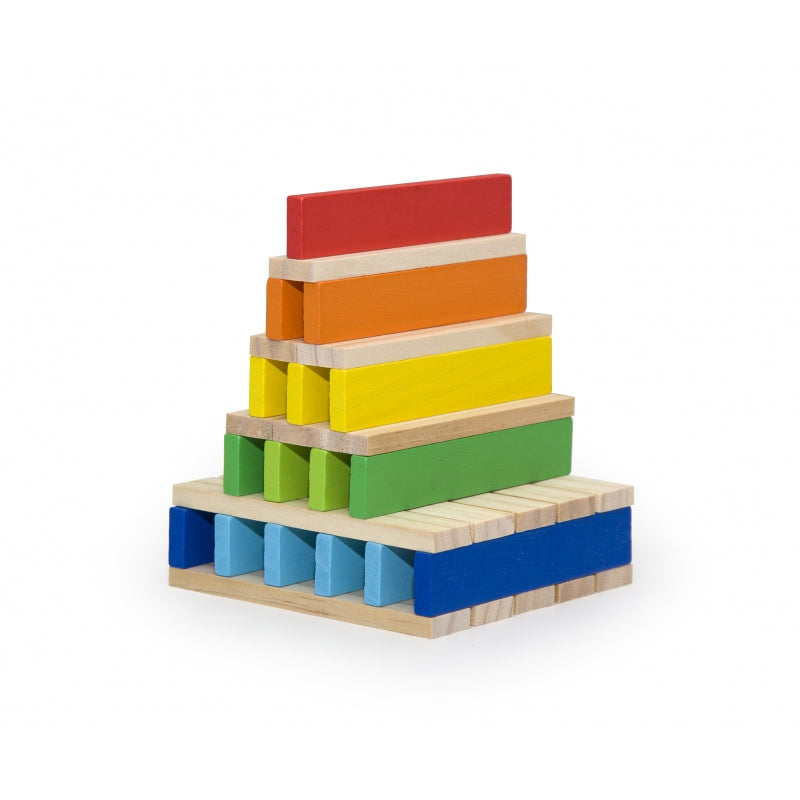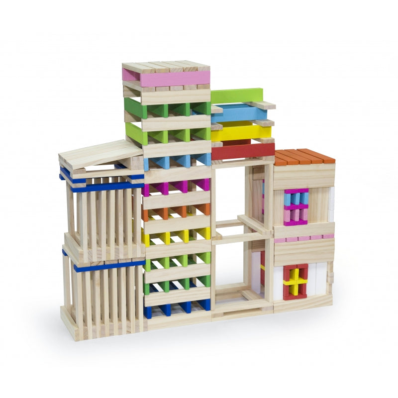 Klasikinis kaladėlių žaidimas, tik dar įdomesnis, spalvingesnis ir sudėtingesnis! Mokytis spalvų, lavinti rankų koordinaciją puikiai tinkamas žaislas. Juo smagu žaisti vienam ir su draugais. Viso rinkinyje 250 vnt medinių lentelių, iš kurių galima pastatyti daugybė skirtingų konstrukcijų, pastatų, modelių ir kt.