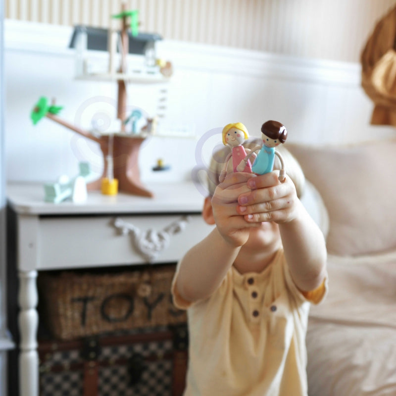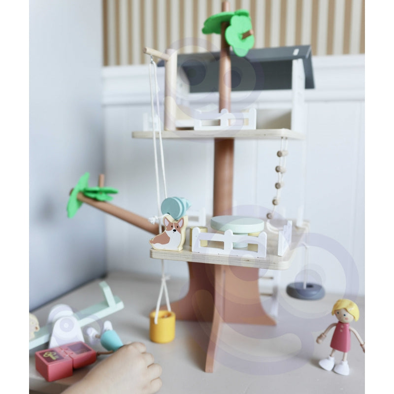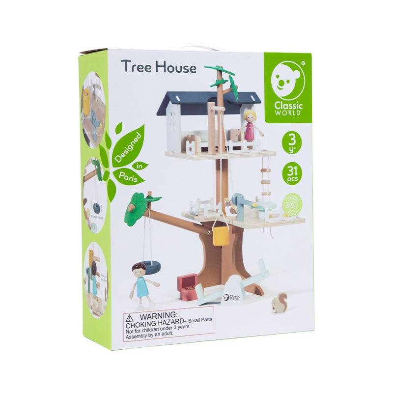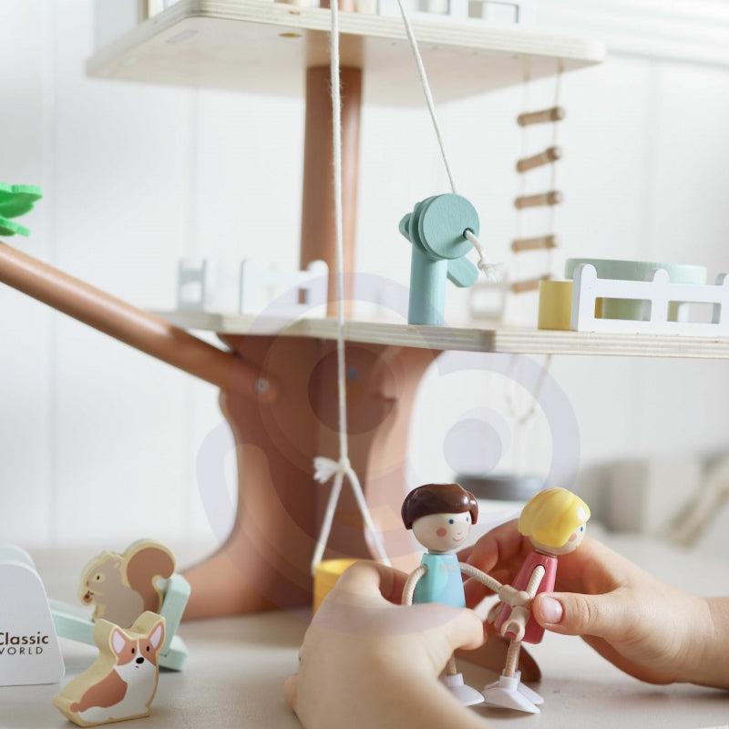 Medžio namelis suteiks vaikui daug pramogų. Unikalus lėlių namelis lavins vaizduotę. Lėlė berniukas gali išsitraukti kibirėlį su kaladėle, o mergaitė gali žaisti su šuniuku. Voverė gali valgyti kankorėžį. Lėlės gali suptis ant sūpynių ir lipti kopėčiomis į namelį medyje. Unikalus namelis paskatins jūsų vaiką kurti istorijas ir nuotykius apie mažąsias lėles.