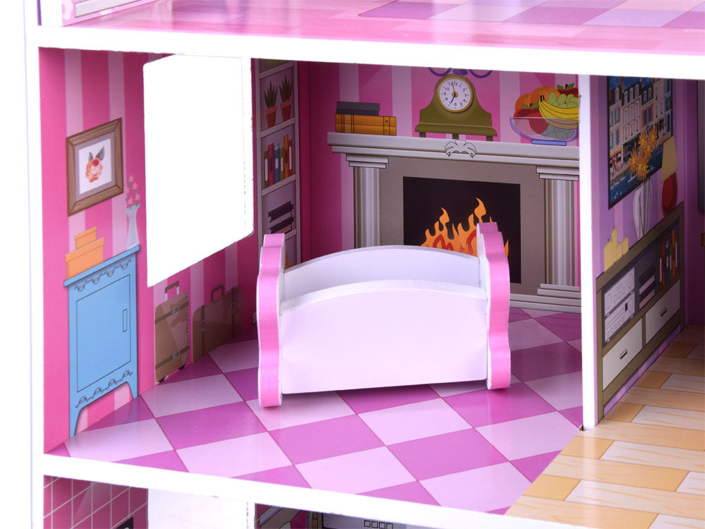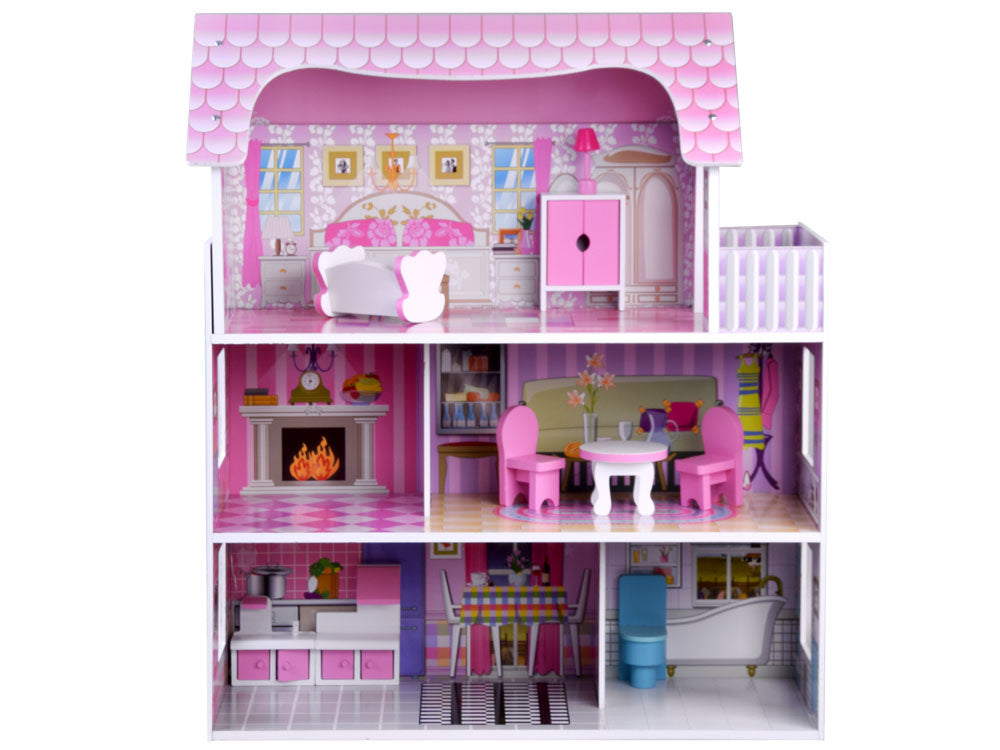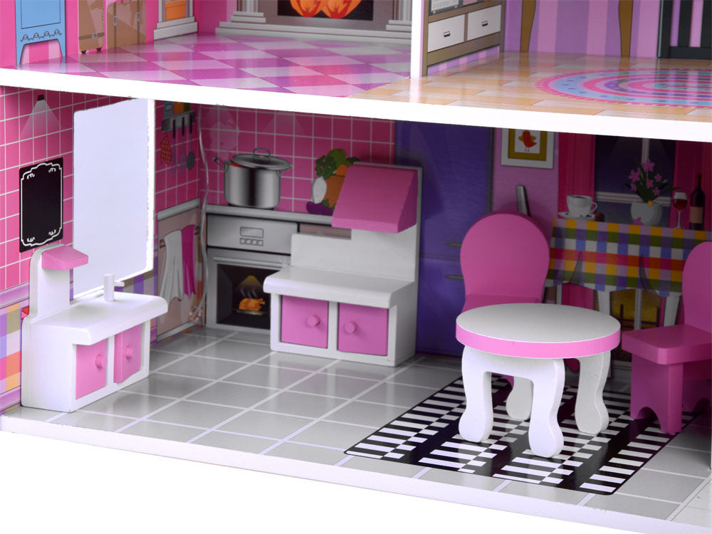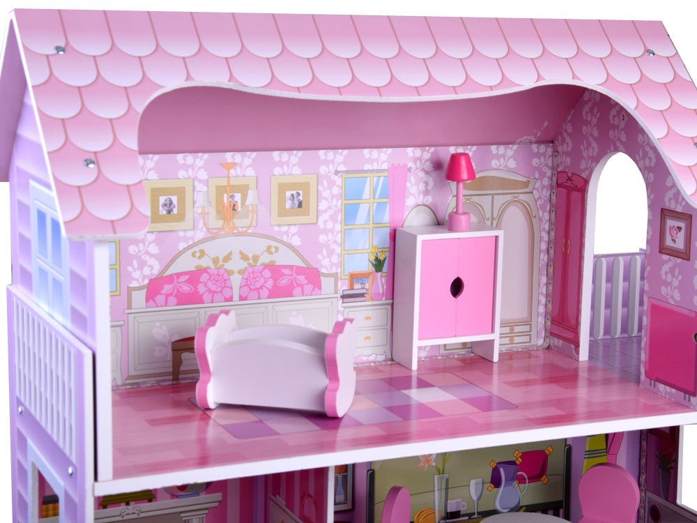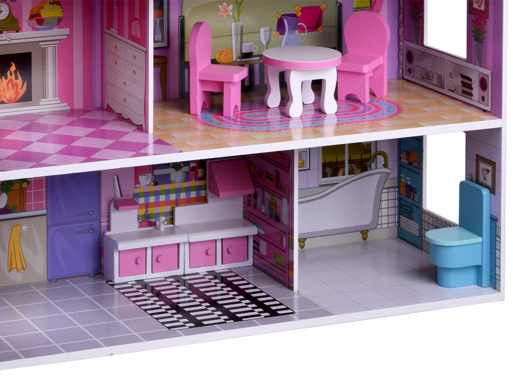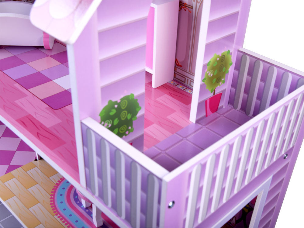 Stilingas trijų aukštų, penkių kambarių ir terasos lėlių namelis savo apartamentuose talpins daug svečių. Namas įrengtas su baldais, kiekviename aukšte paskirstytas LED apšvietimas, tiesiog nuostabu! Namas išlaikytas rožinės ir violetinės spalvos atspalviais, labai efektyviai tinka su puikia kambarių grafika.