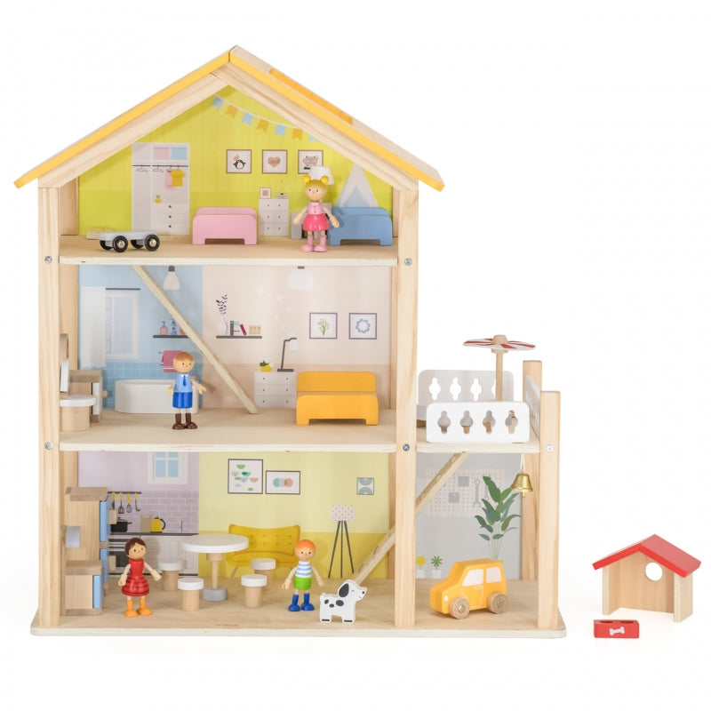Medinis lėlių namelis su lėlėmis ir aksesuarais, VIGA