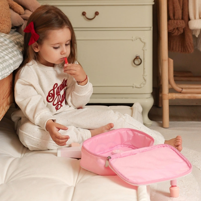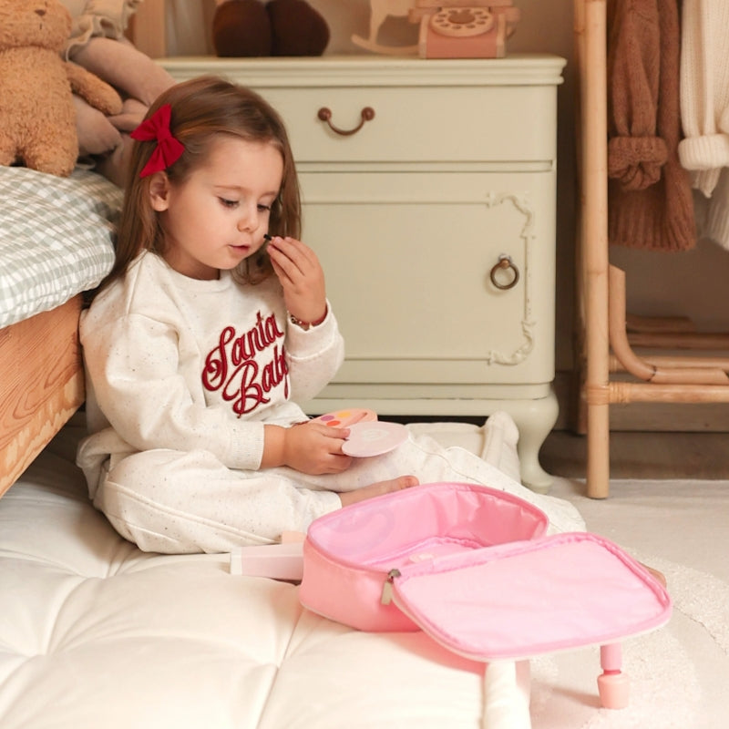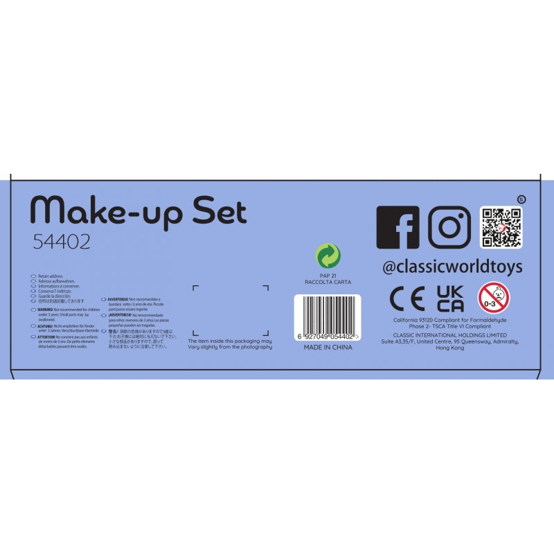 Classic World kosmetinė su makiažo aksesuarais - tai žavus kosmetikos rinkinys, apie kurį svajoja kiekvienas mažas stilistas! Elegantiškame makiažo krepšyje ji ras viską, ko reikia, kad galėtų pasijusti tikra žvaigžde. Mediniai aksesuarai, kurie ne tik atrodo kaip tikri, bet ir yra visiškai saugūs vaikams, nukels vaiką į kūrybinių žaidimų pasaulį.
