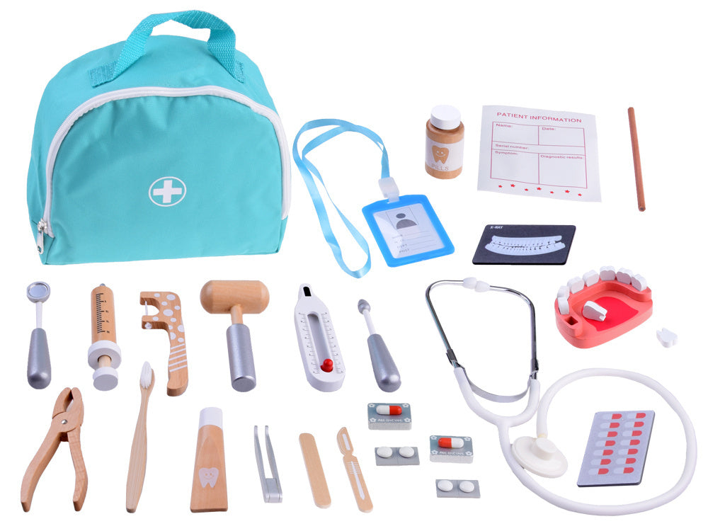 Daugelį elementų turinčiame mažojo odontologo rinkinyje yra viskas, ko reikia, kad būtų labai smagu. Rinkinys puikiai tiks vaikui, kuris ateityje norėtų tapti odontologu ar gydytoju, taip pat vaikams, kurie nenoriai lankosi odontologo kabinete. Žaidimas su odontologiniais aksesuarais gali padėti įveikti jų baimę. Jie neabejotinai suteiks daugybę valandų puikios pramogos. Visa tai supakuota į talpų medžiaginį maišelį su patogia rankena. Rinkinys supakuotas į spalvingą, estetišką dėžutę, puikiai tinkančią dovanai.