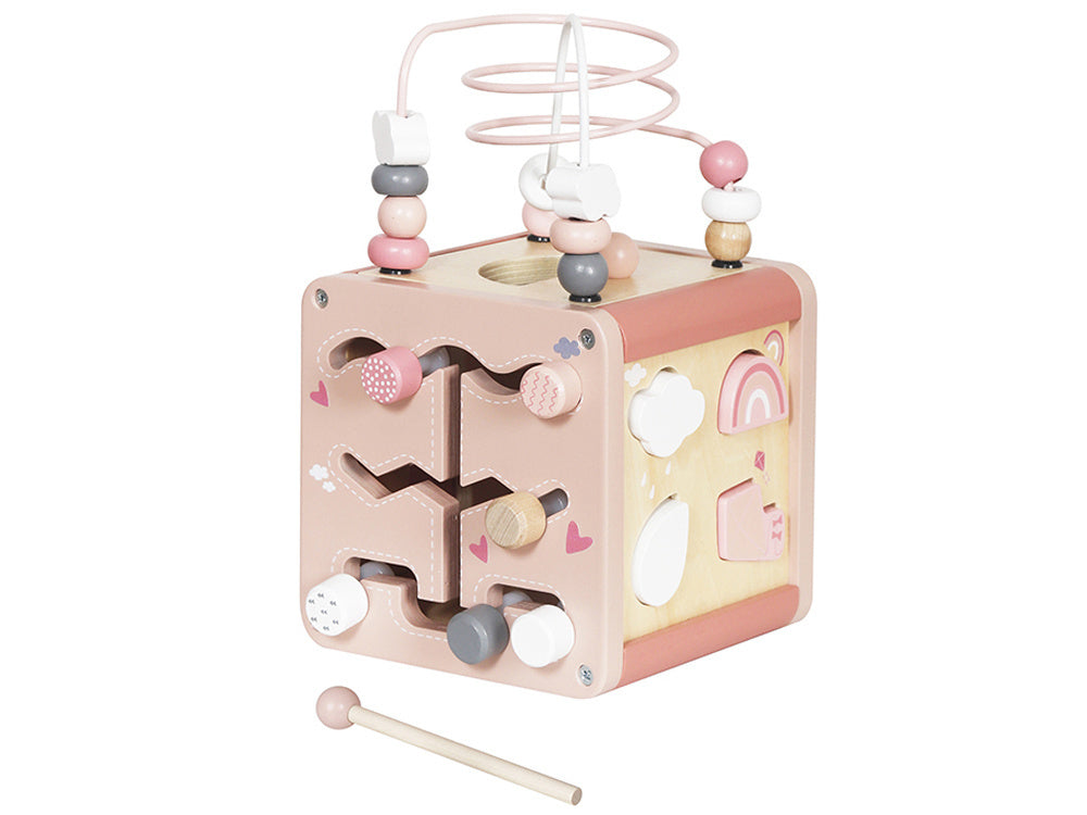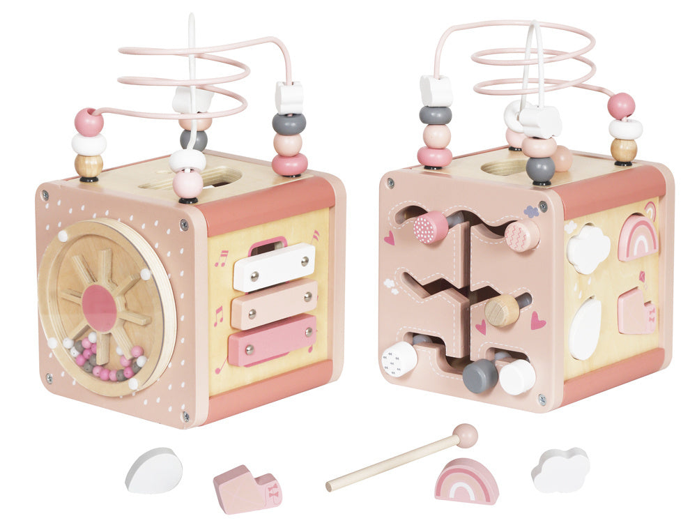 Medinis Montessori daugiafunkcinis veiklos kubas vaikams, rožinis