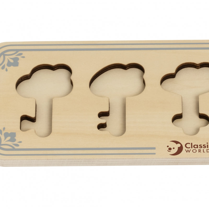 Medinis Montessori sensorinis galvosūkis „Raktai ir spynos“, Classic World