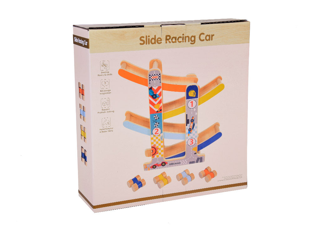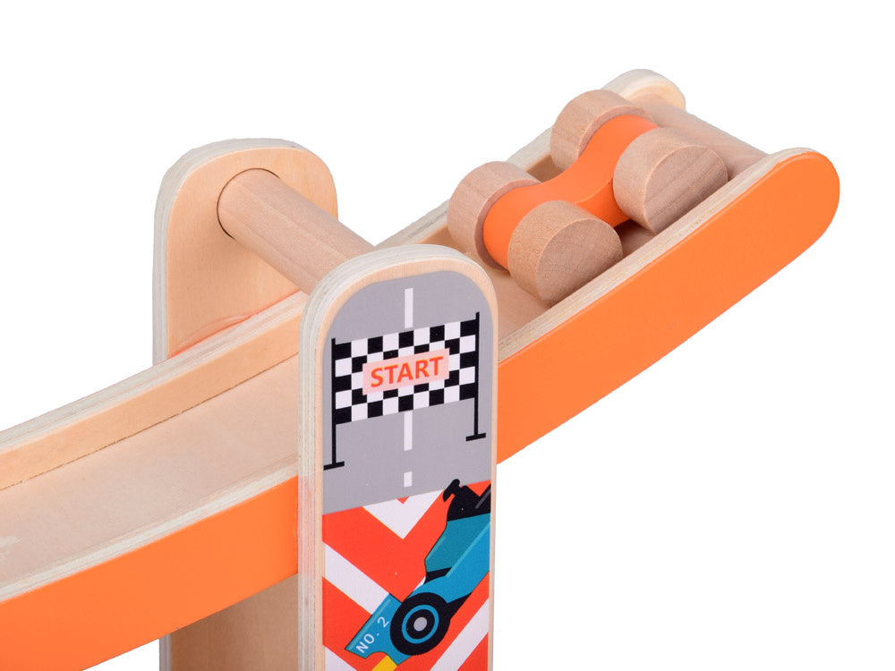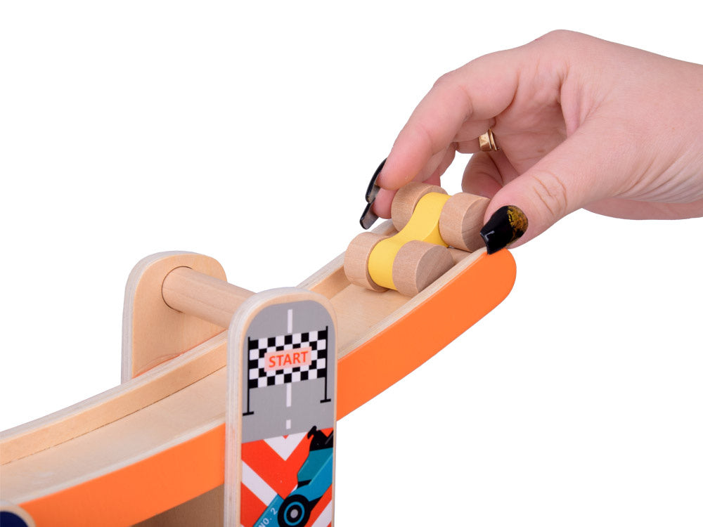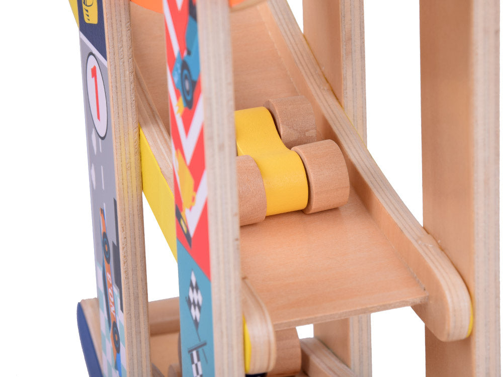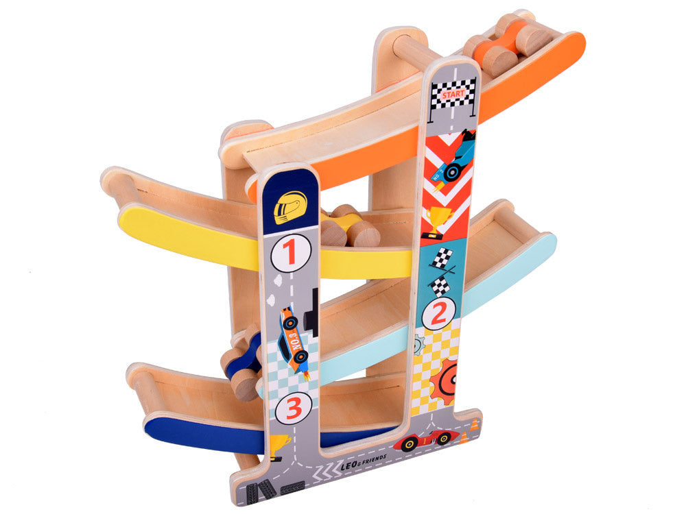Medinis automobilių nusileidimo takas - spalvinga pramoga kuri lavina ir džiugina! Leiskite savo vaikui patekti į automobilių pramogų pasaulį! Medinis automobilių kalnelis yra idealus lavinamasis žaislas, lavinantis rankų darbo įgūdžius, mokantis spalvų, loginio mąstymo ir skatinantis kūrybiškai žaisti.